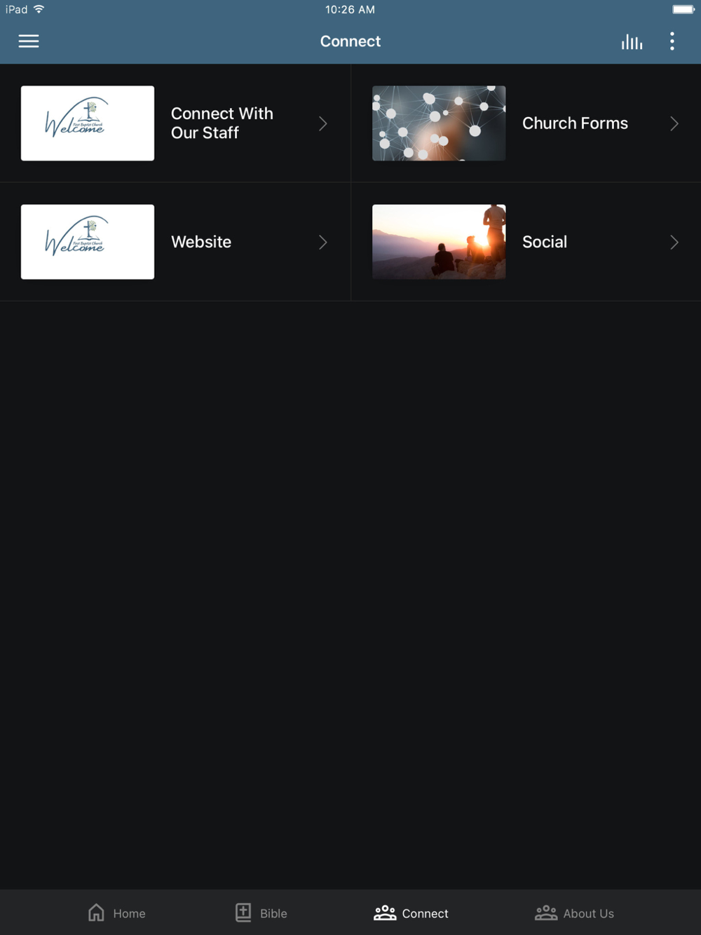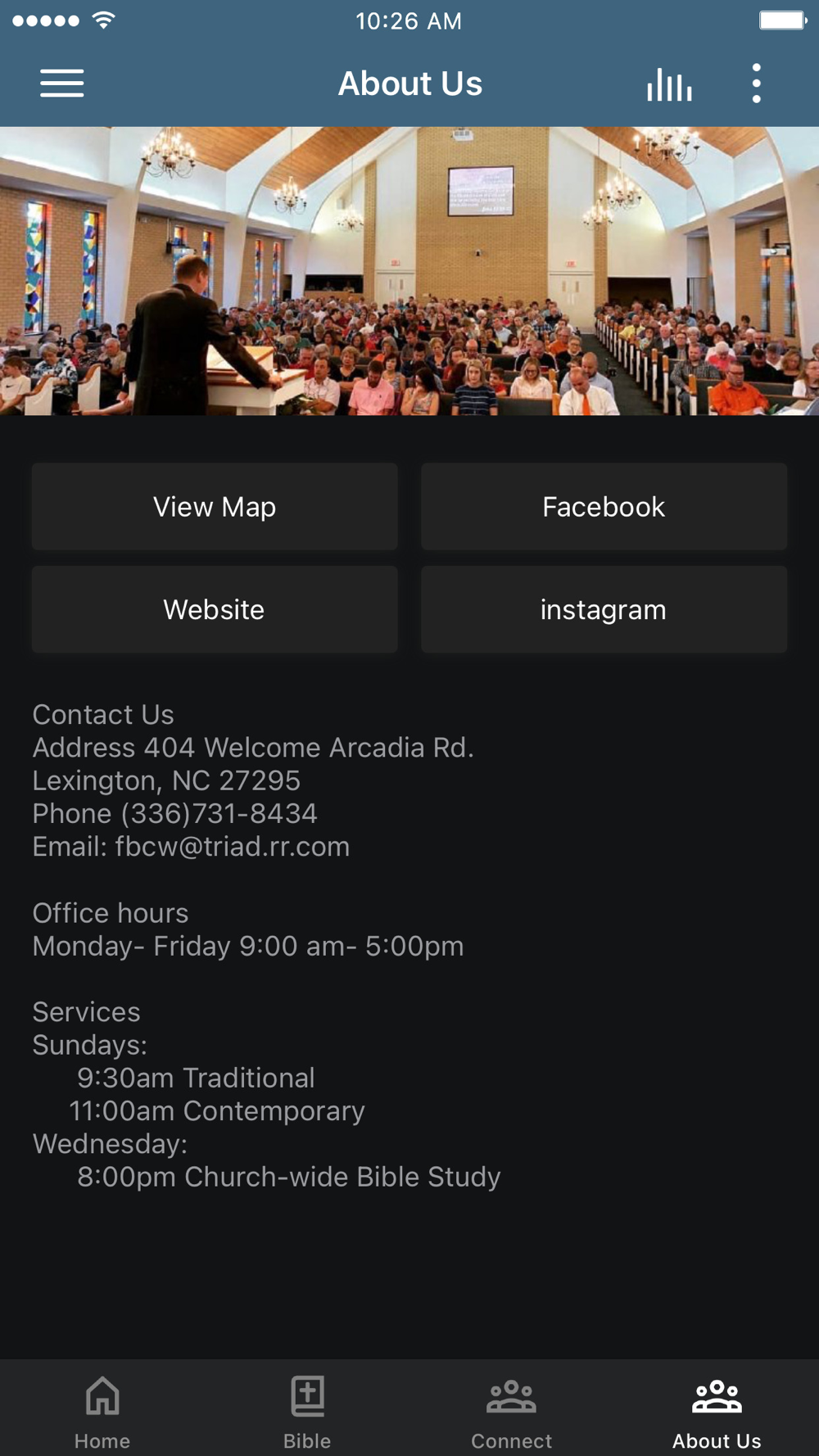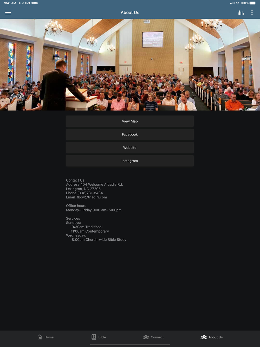 This app will help you stay connected with the day-to-day life of our church. With this app you can: watch or listen to past messages; stay up to date with push notifications; share your favorite messages via Twitter, Facebook, or email; and download messages for offline listening.