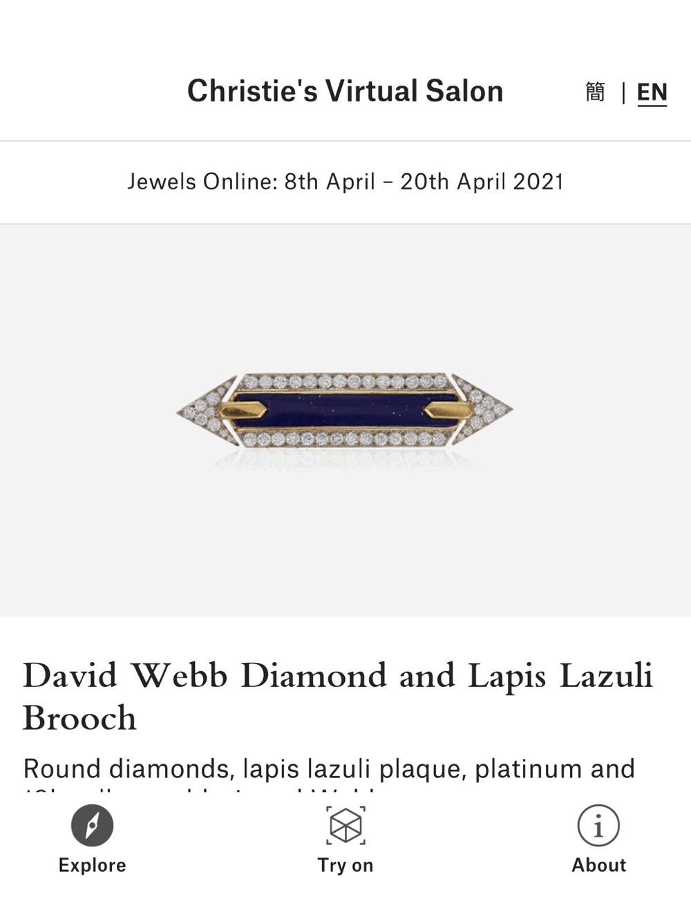 Bring the Christie’s luxury salon experience into your dressing room, with our new augmented reality app. Simply download the Christie’s Virtual Salon app and see how our select collection of jewels and watches look on you, ahead of our global Luxury Week auctions.