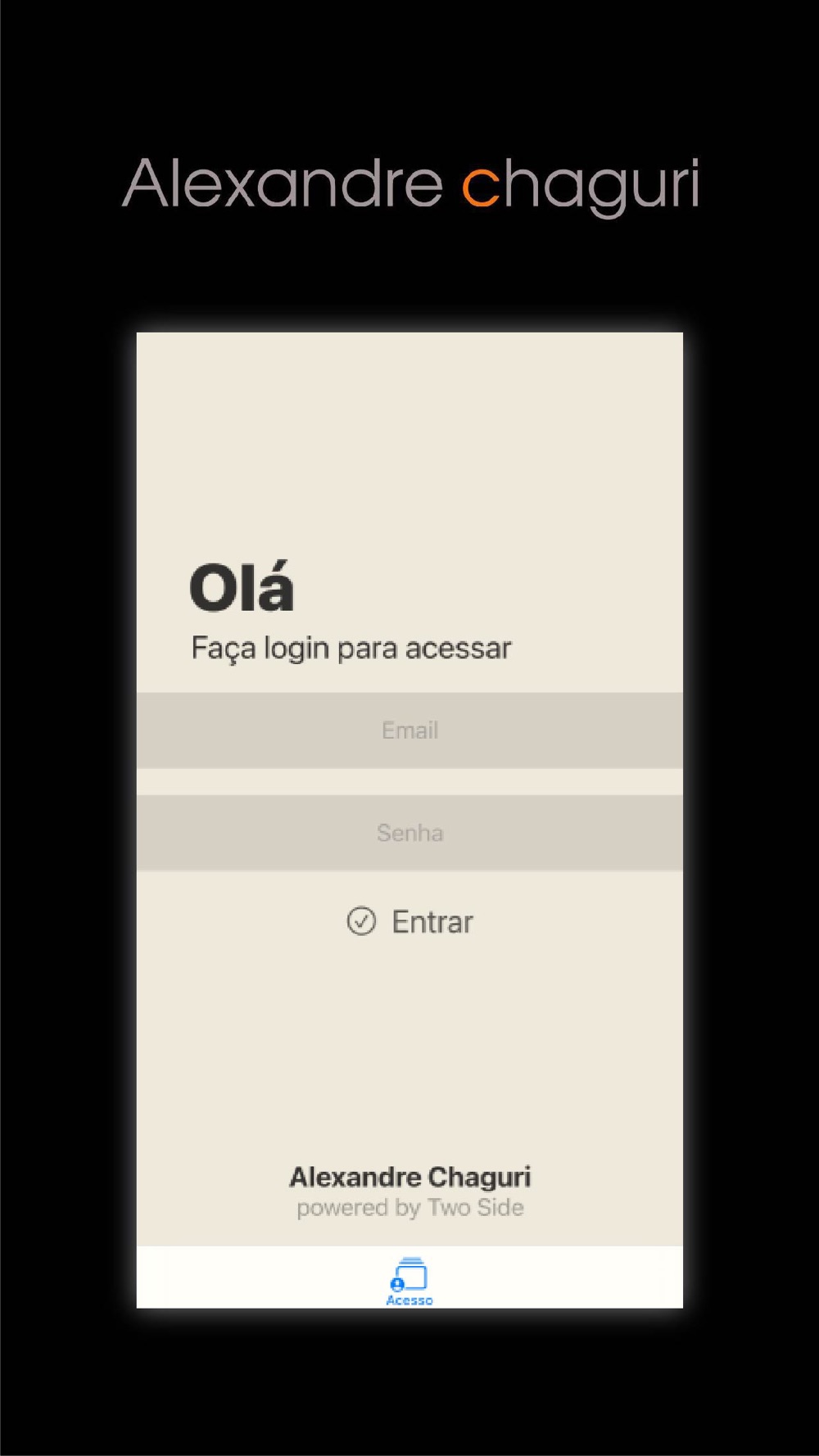 Faça login e acompanhe de forma rápida e prática os seus projetos feitos por Alexandre Chaguri.
