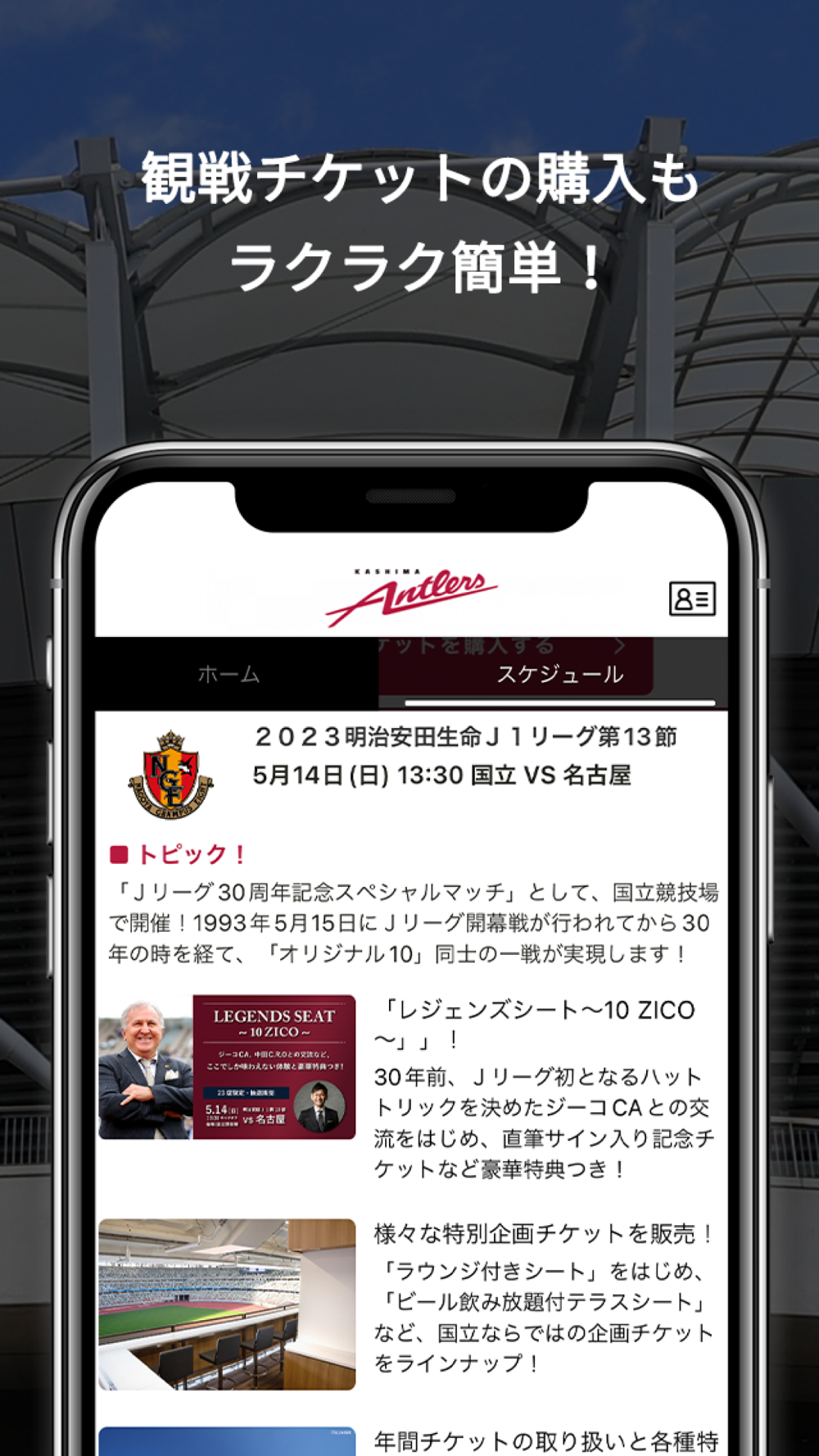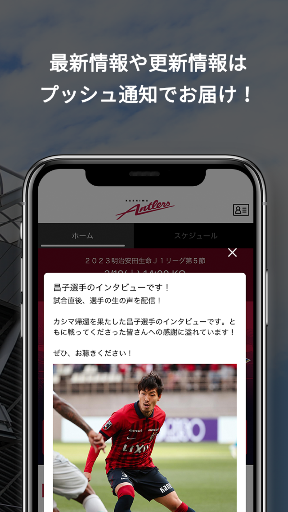 また、鹿島アントラーズからの最新情報をプッシュ通知でお届けします。アントラーズに関するすべてのニュースがアプリで確認できます。