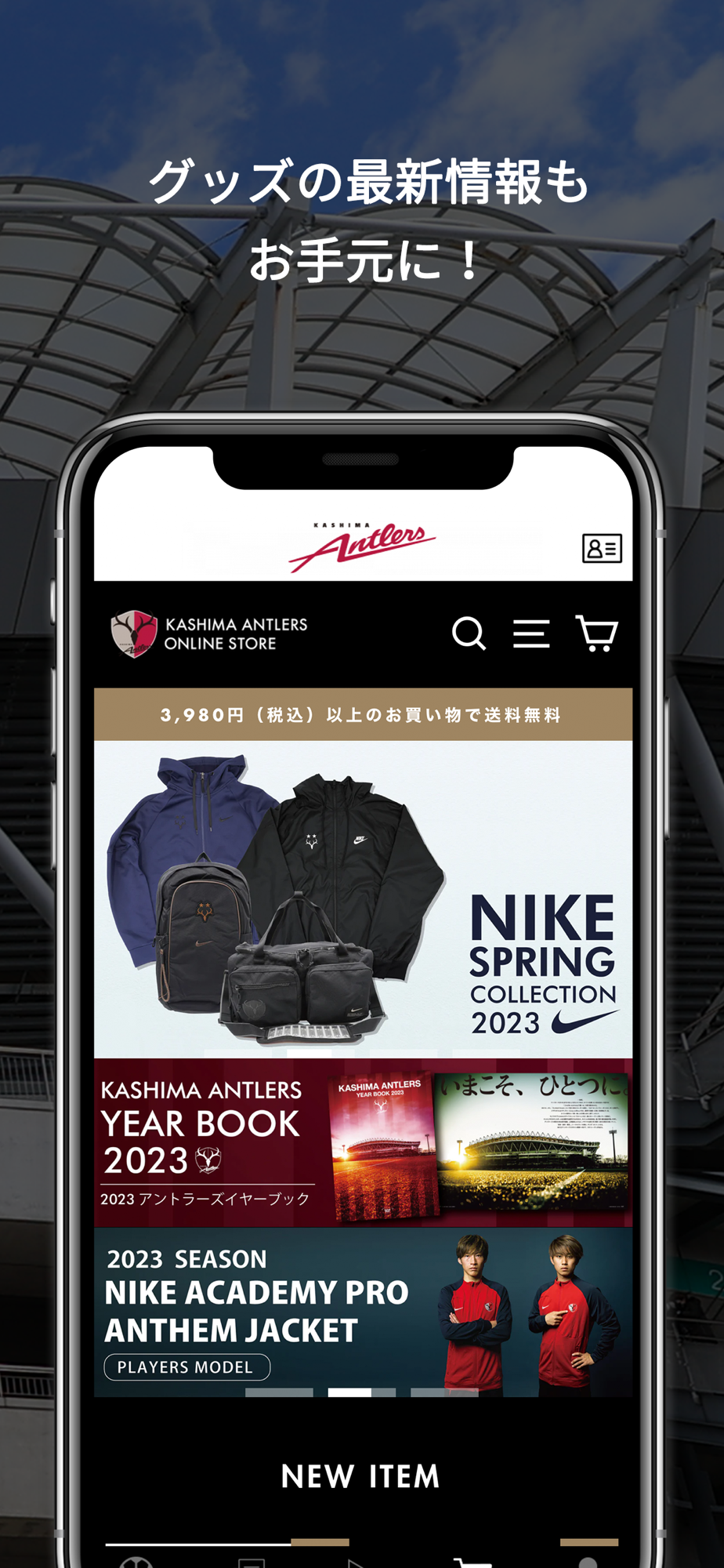 鹿島アントラーズのグッズ情報の確認と公式サイトでのグッズ購入が可能です。