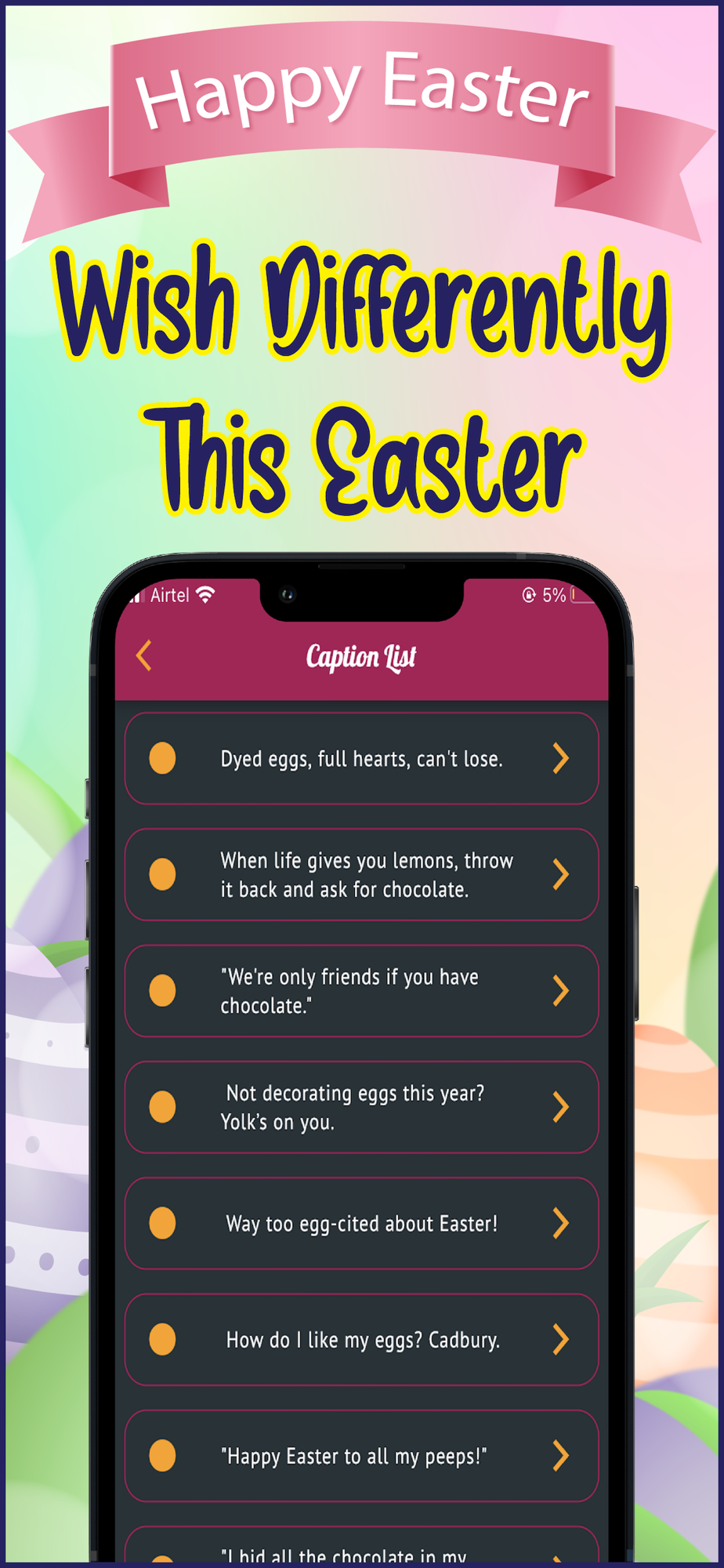 This app brings you the best collection of Wishes ,Images, Gifs, Messages, Quotes, Instagram Captions, Status, Meme, Greetings e-cards of Happy Easter Day .