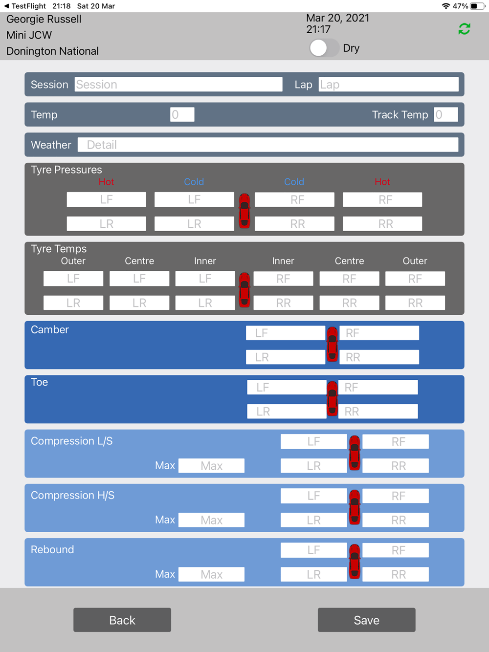 Race Car Setup Log has been developed by a current race team and designed to replicate and so replace your paper records.