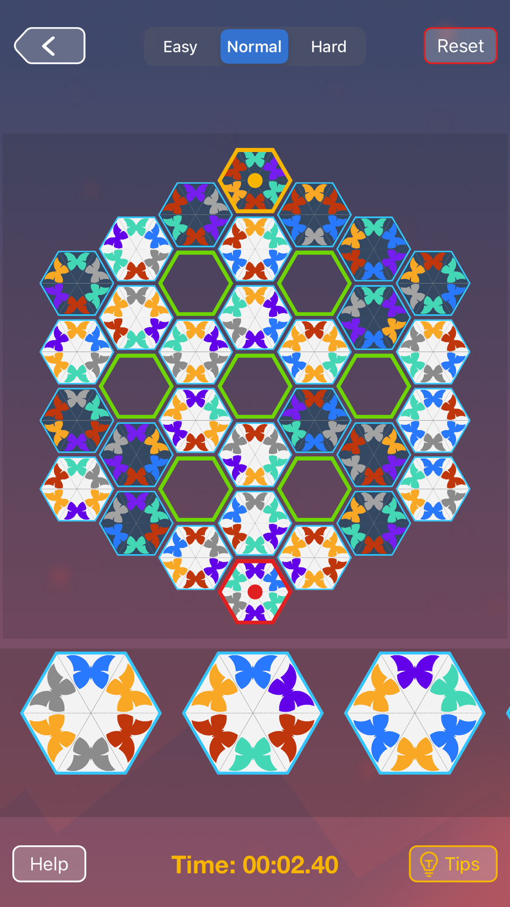 1. In the hexagonal disk, hexagons painted with six-colored butterflies are distributed in disorder;