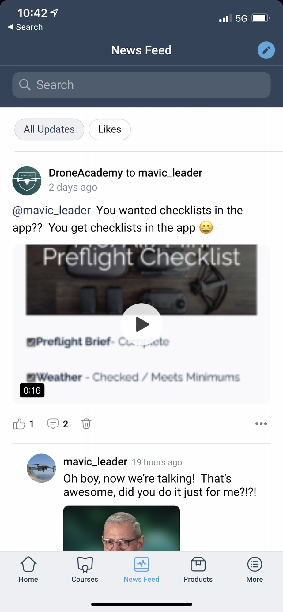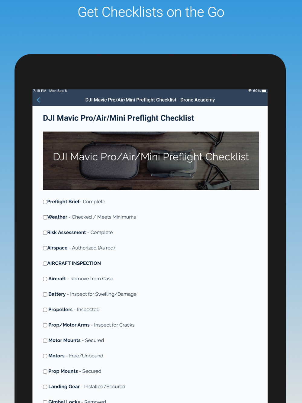 Get the most out of your Drone Academy membership with The Drone Academy App! Users can get access to all Drone Academy's Training Courses, Community, and Resources (like checklists) on the go!