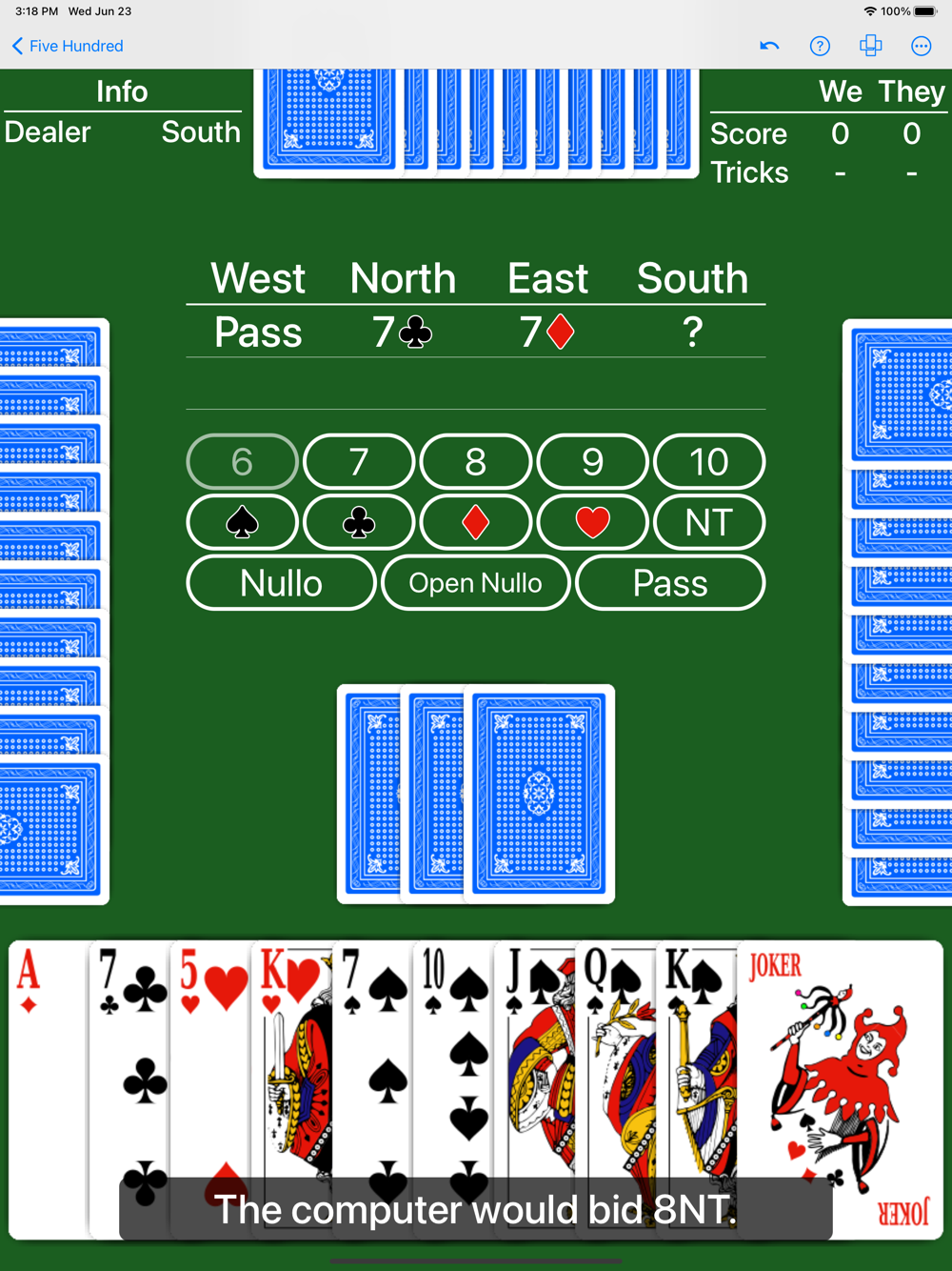 • Bid and play hints. Uncertain of what to bid or play? See what the computer would do!
