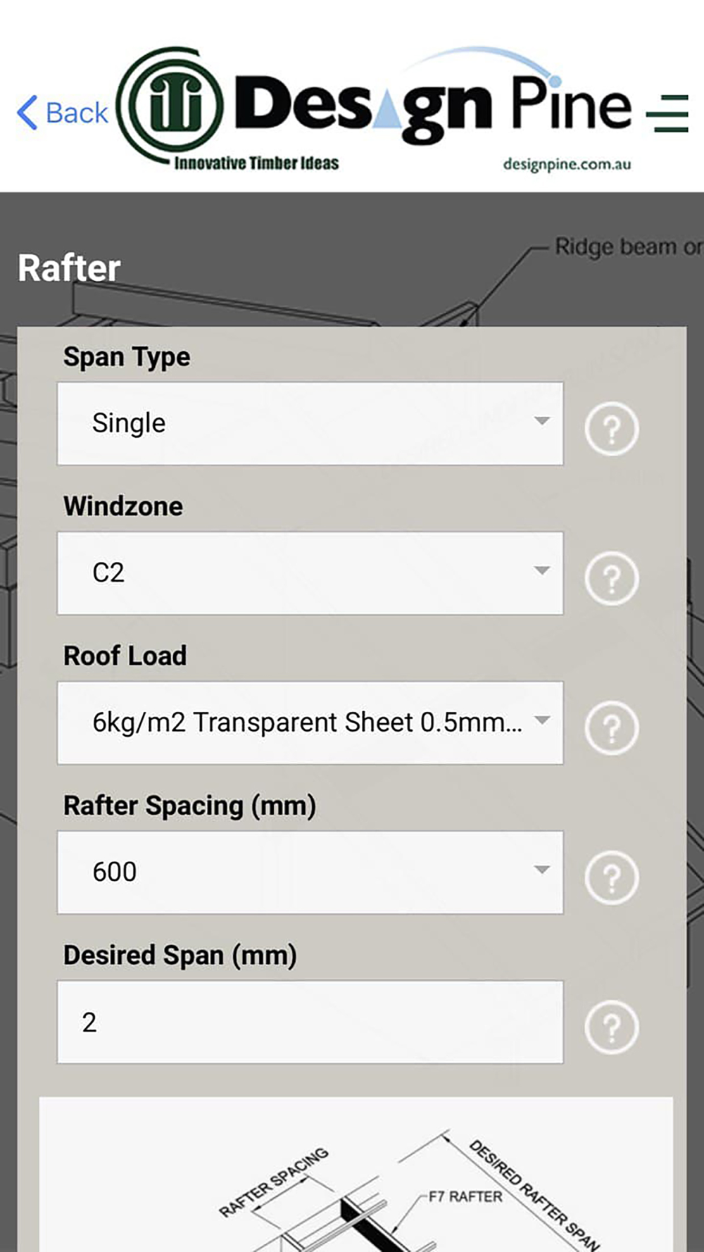 Design Pine is the original pre primed H3 LOSP treated pine timber for exterior use. We now bring you a Span App for the timber carpenters and builders love to use. The Design Pine Span App will help you specify/select the correct timber size and strength grade for Rafters, Roof Beams, Ridge Beams, Bearers, Joists or Posts for your next project.