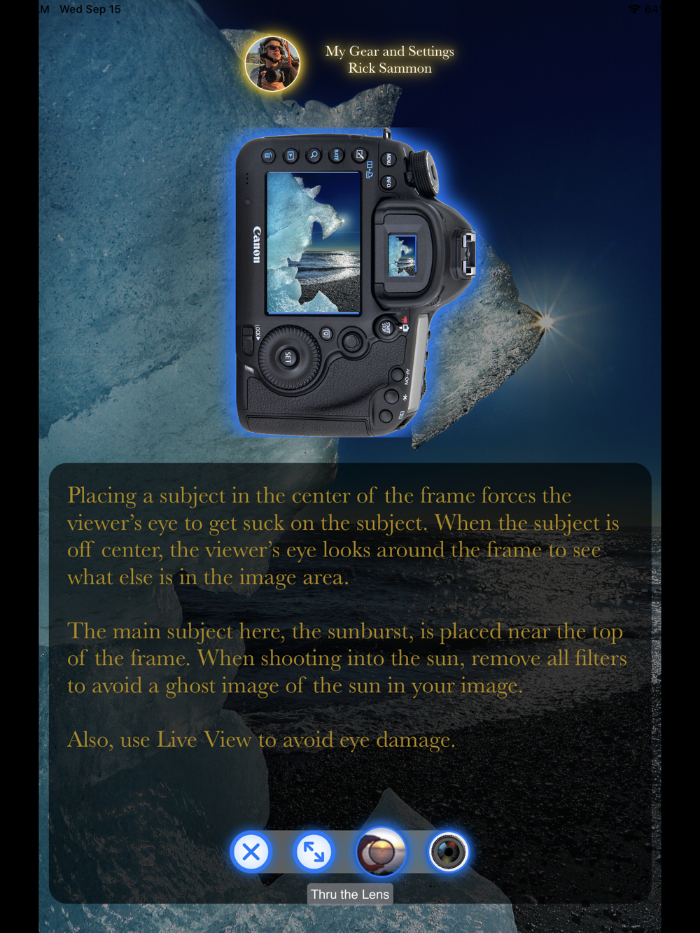 Rick’s Sammon’s latest app, Composition Plus: Iceland Edition, is several educational apps in one.