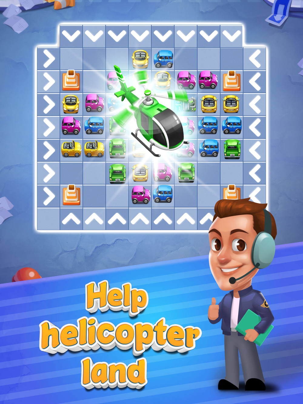 -Match 3 cars of the same color to solve traffic jams.