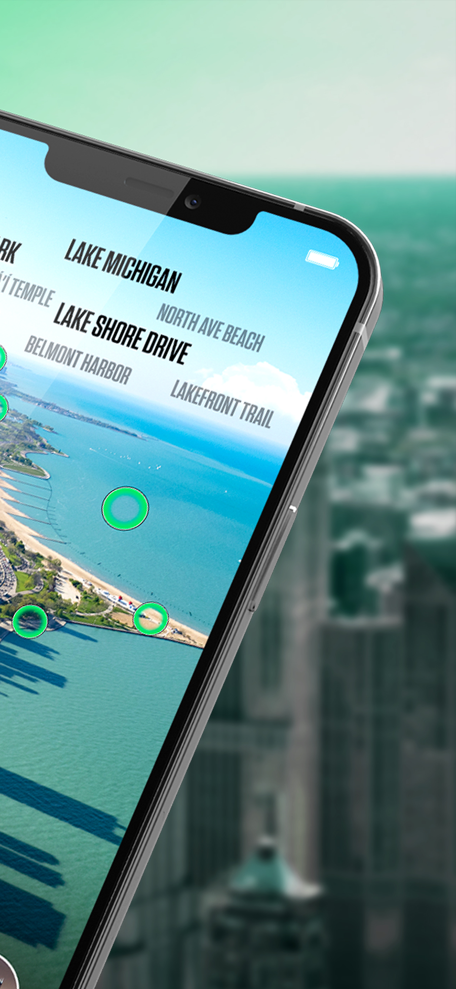 Simplamente apunte el camera de su iPhone hacia el horizonte para navegar por 60 lugares icónicos en Chicago.