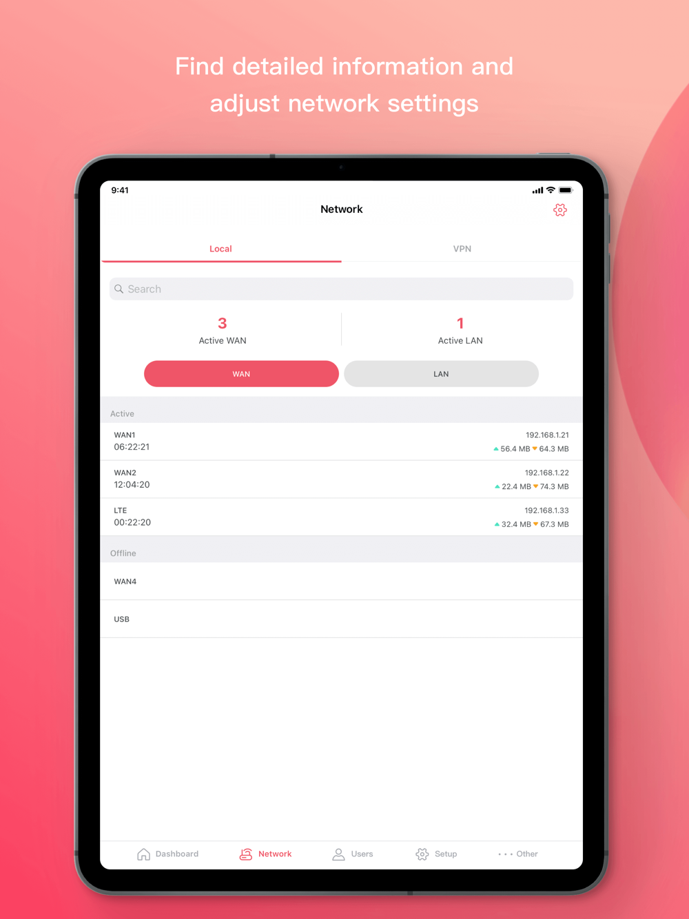The app allows you to easily setup and manage Vigor Routers. From setting up at the very beginning to everyday-use monitoring.