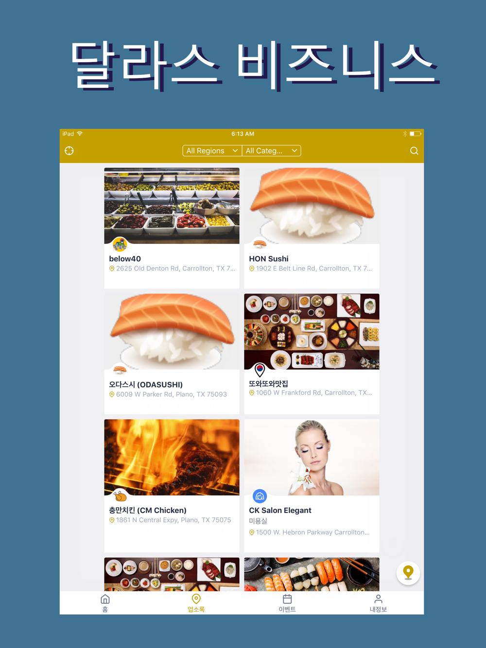 또한 달라스의 다양한 행사 정보를 제공함으로써 달라스 한인 및 달라스 여행자들에게 꼭 필요한 앱입니다.