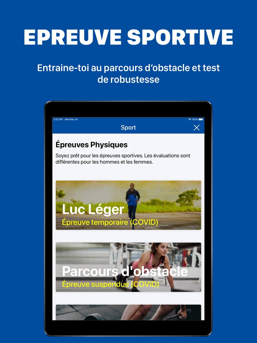 Une partie de l’application vous permet de trouver tout ce dont vous avez besoin pour réussir les épreuves de sport.