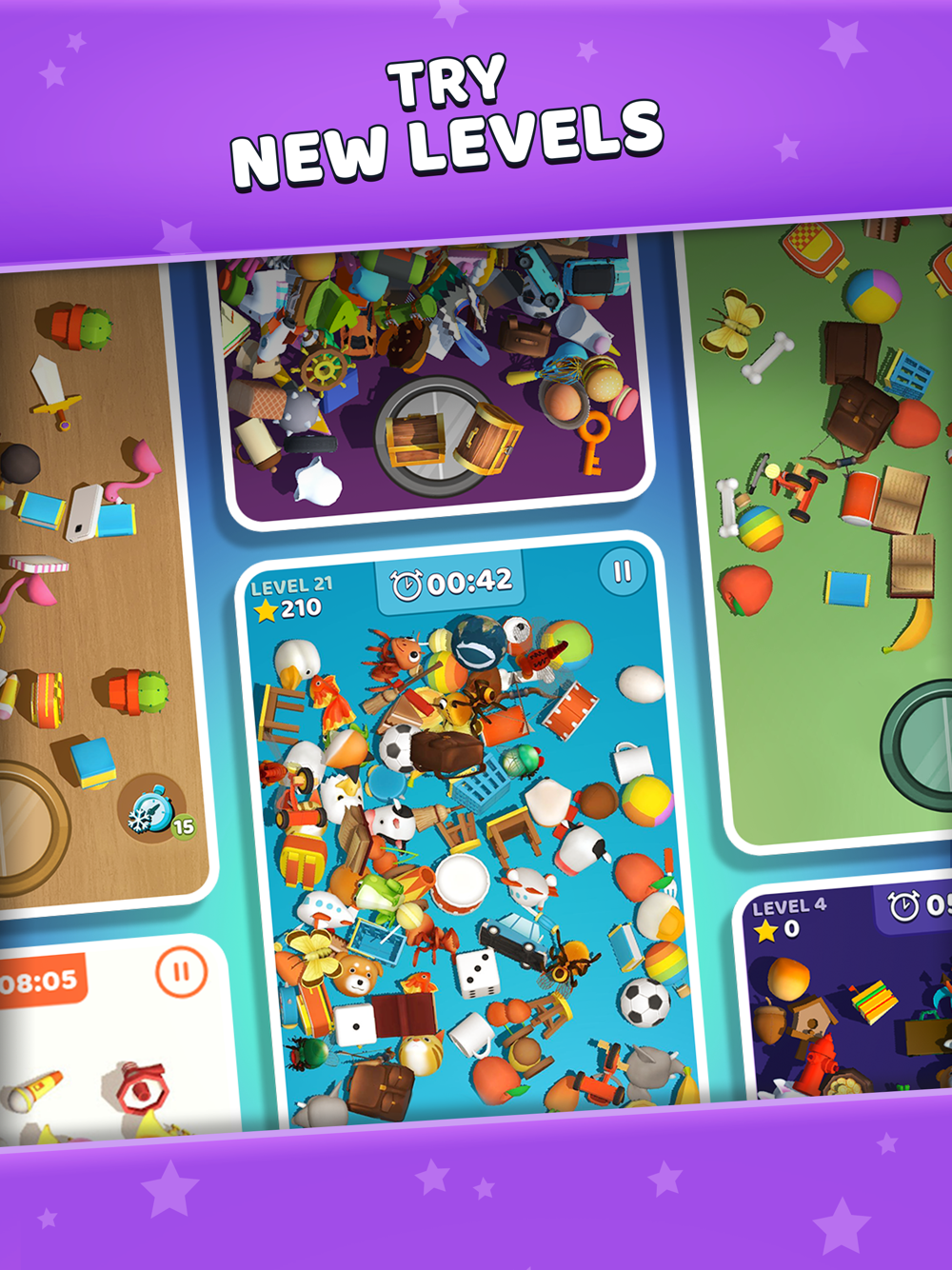 - A huge amount of 3D objects to match: charming pets, glossy toys, yummy candies and fruits and more!