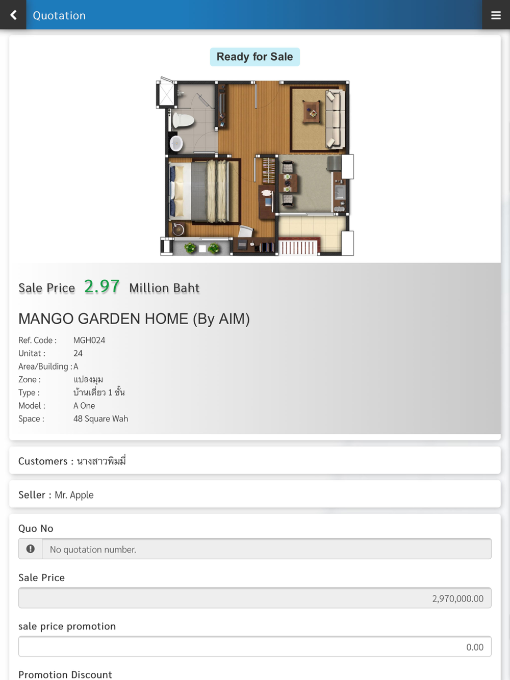 เครื่องมือสำหรับพนักงานขายเพื่อใช้ในการติดต่อพบปะกับลูกค้า ทำแบบสอบถาม นำเสนอสินค้าและบริการเกี่ยวกับอสังหาริมทรัพย์ ไปจนถึงการทำใบเสนอราคาให้แก่ผู้ที่เข้ามาเยี่ยมชมโครงการ Sales gallery หรือบูทประชาสัมพันธ์ เป็นต้น