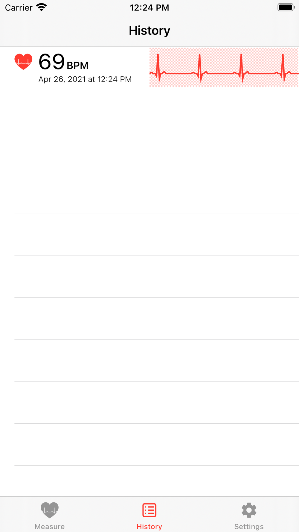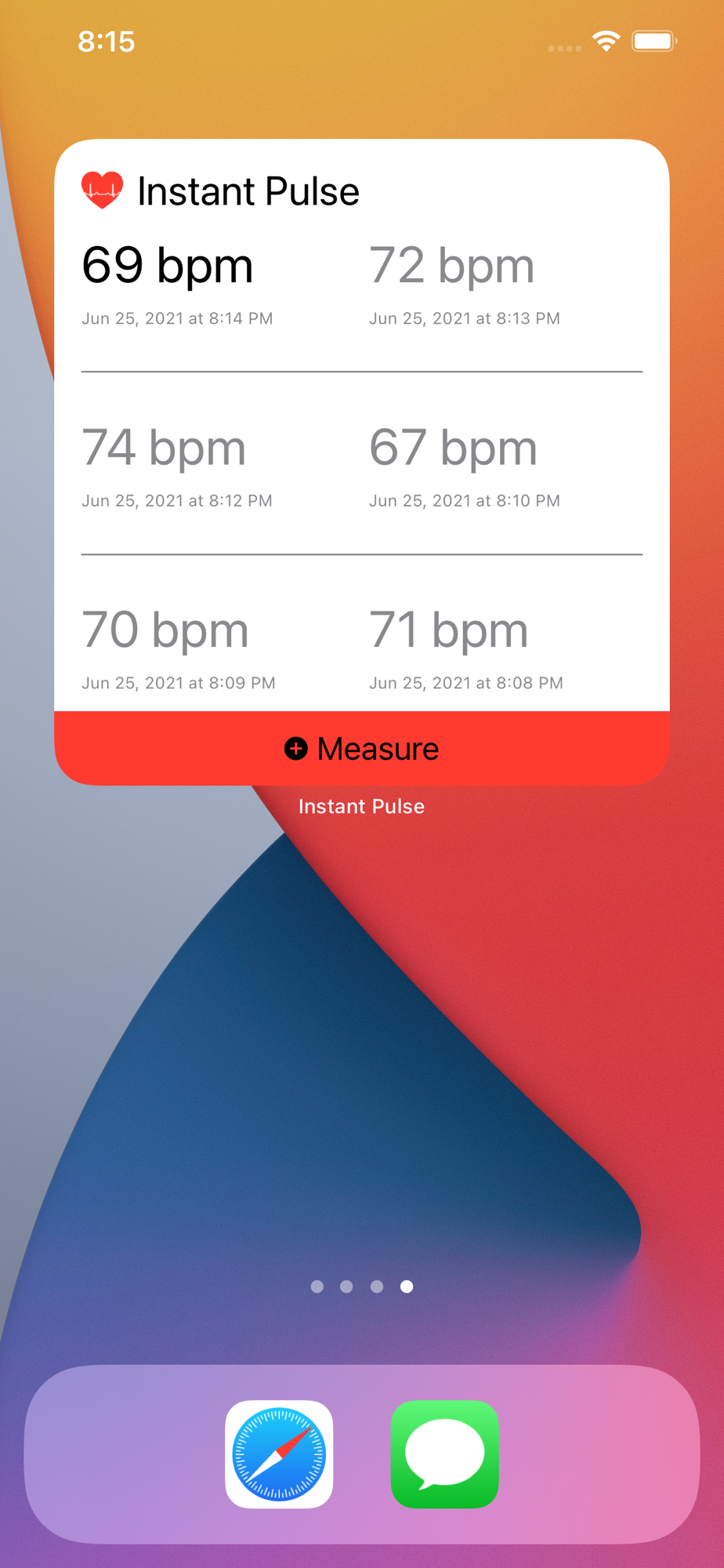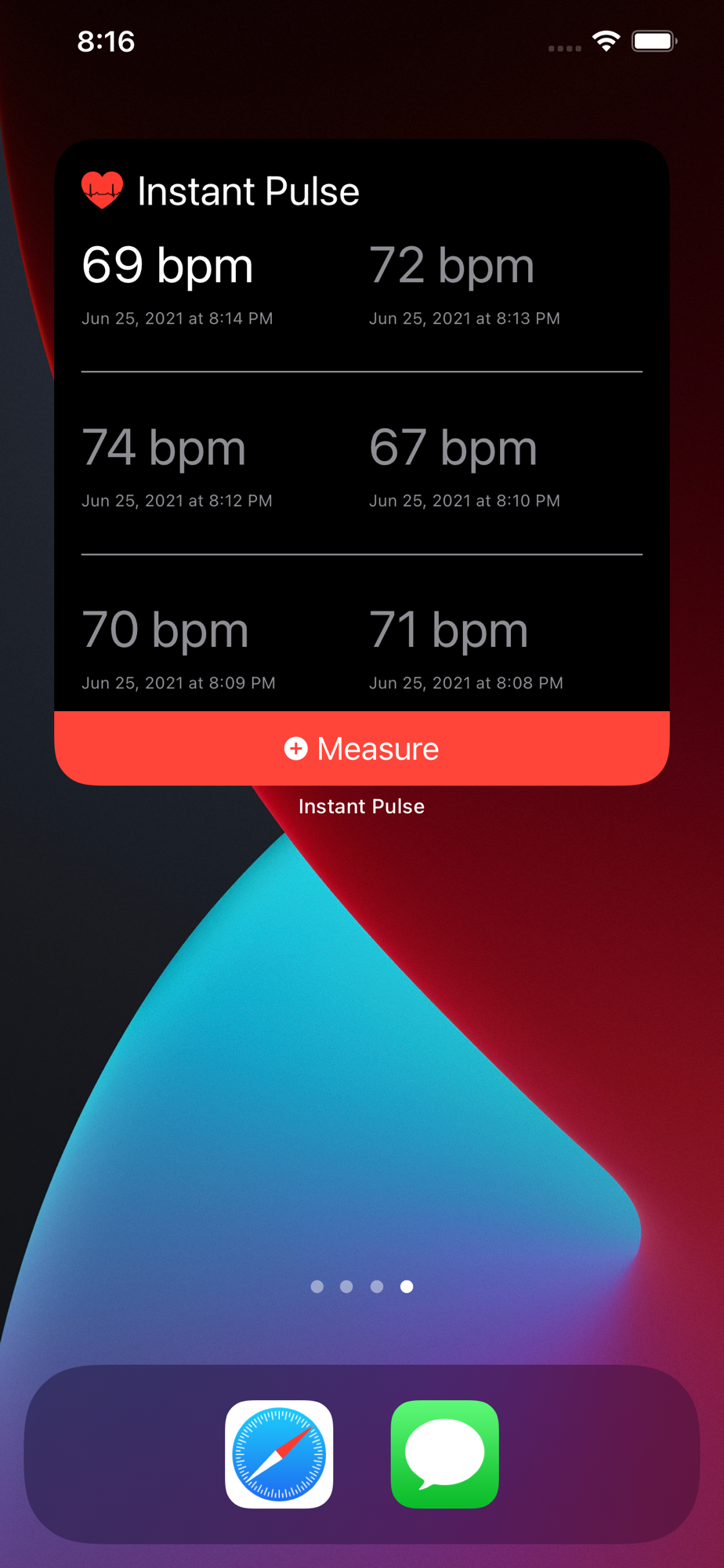 From the moment you place your finger calmly on the camera and stand still the app needs only 8 seconds to measure your heart rate and save the result.