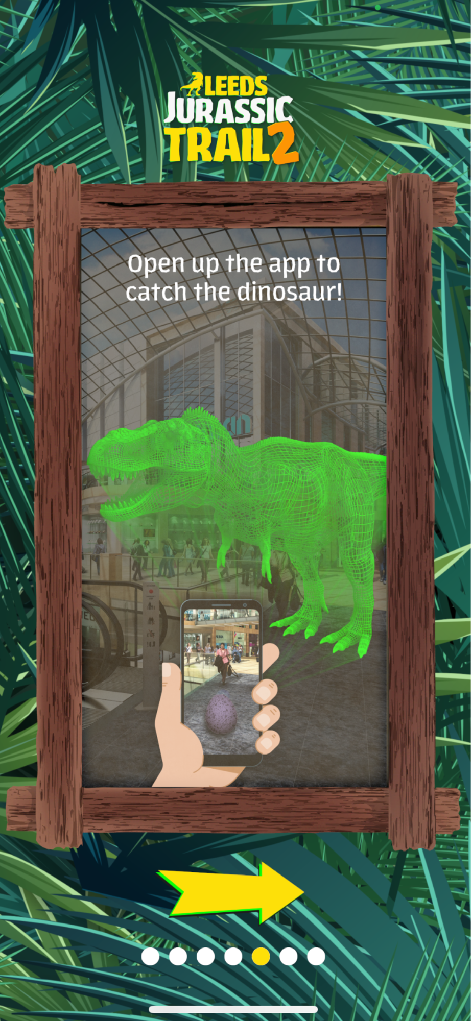 Find the giant dinosaur eggs across Leeds City Centre and see the dinosaurs come to life on your screen! 12 large eggs have started to hatch around Leeds and it’s your job to hunt them all down. Have a monster day out with the whole family and try and find them all. Using the app, scan the AR display markers next to the dinosaur egg. Then, point you phone to floor and tap to hatch the dinosaur egg. You have discovered a dinosaur! Resize the dinosaur and move it around on your screen to bring them into your world.