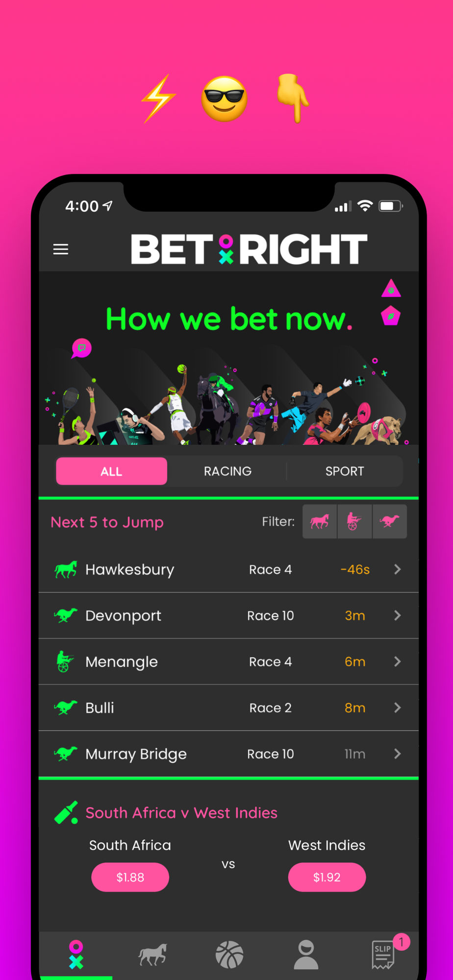 * The Bet Right app allows you to share tips, form and wins with your friends, making betting social again.