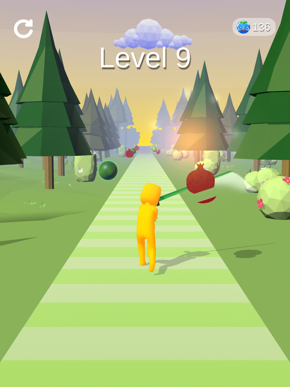 Slide left and right to cut more fruit, Try to reach the finish line and cut as much boss fruit as possible