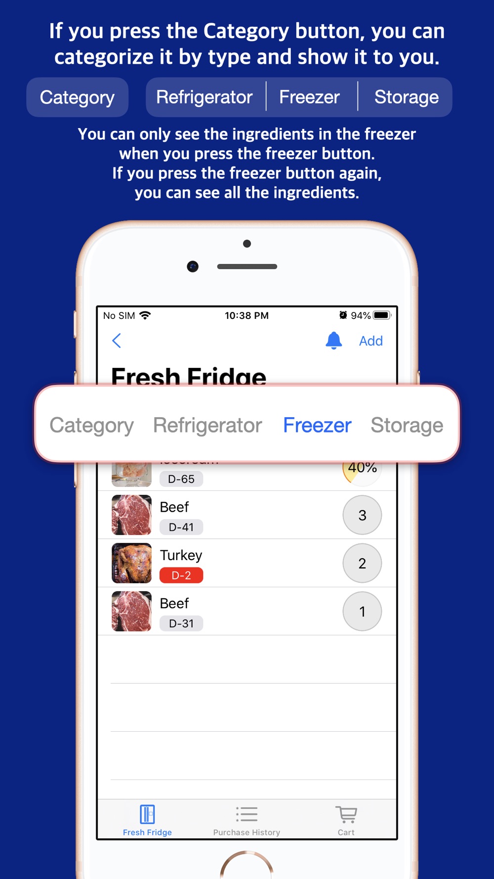 - Shelf life expiration notification: A push notification tells you the food that its shelf life is expired.