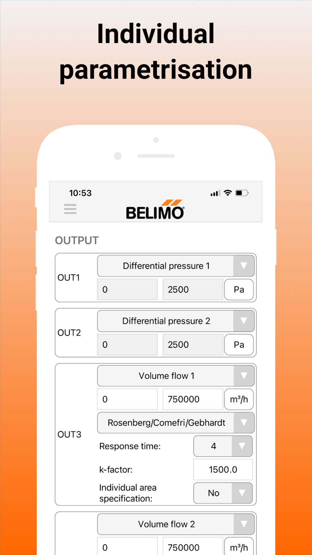 Via the Belimo Duct Sensor Assistant App it is possible to extend the range of use and to adapt the configuration individually to application requirements. A Bluetooth® dongle is required for configuration via the Belimo Duct Sensor Assistant App (sold separately, A-22G-A05).