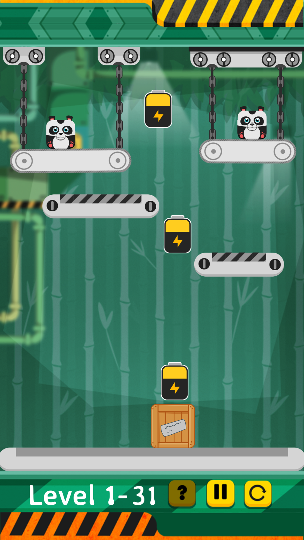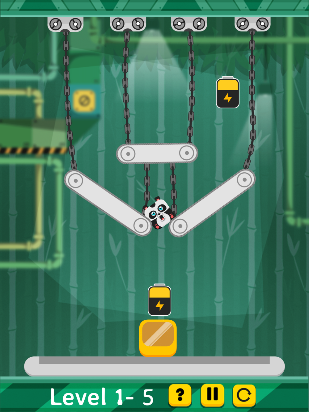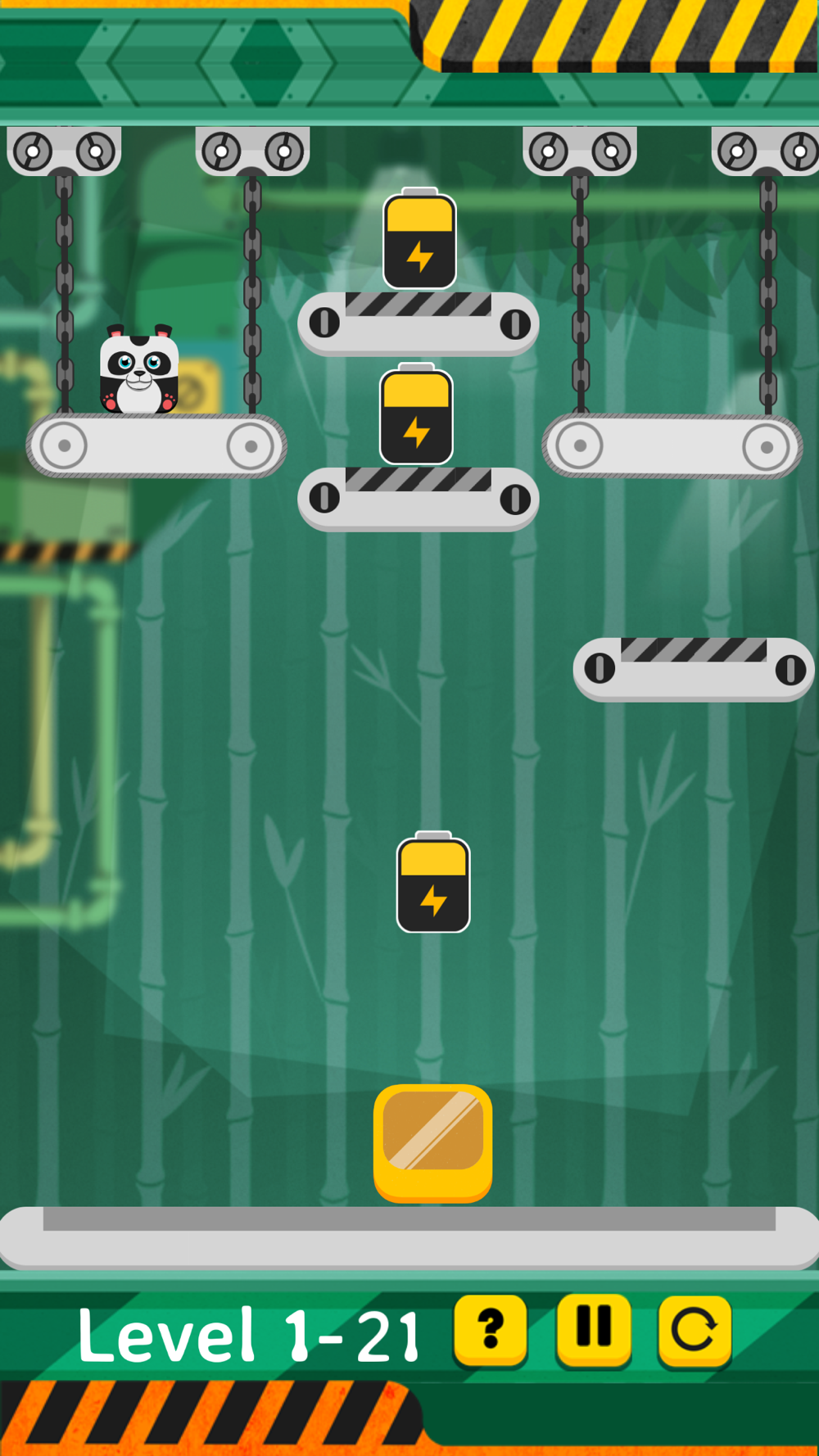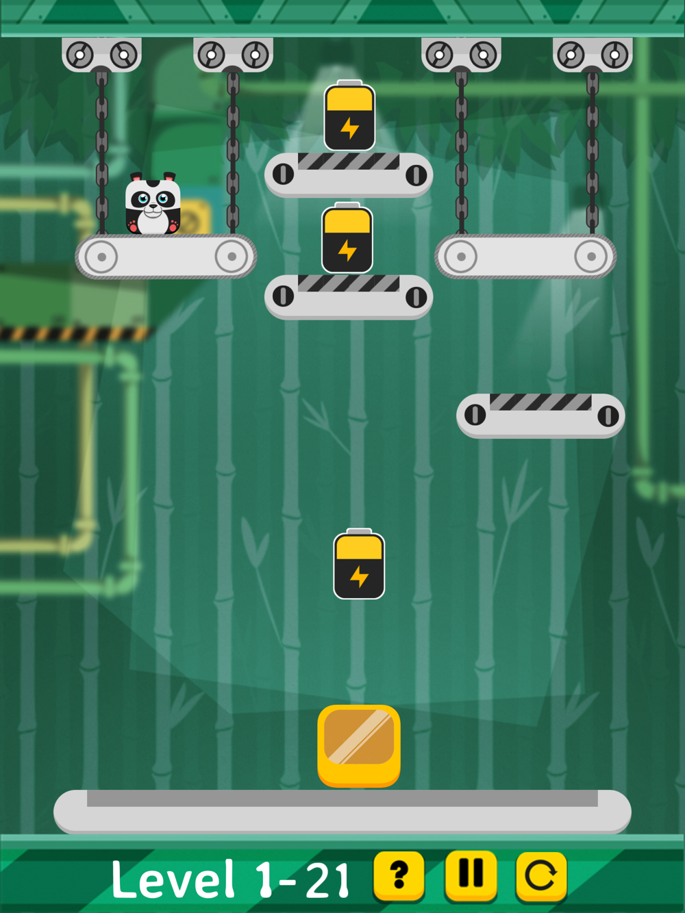 In the first toy factory theme, you will be able to control ropes and slider as well as moving belts to guide the panda and drop it into its box