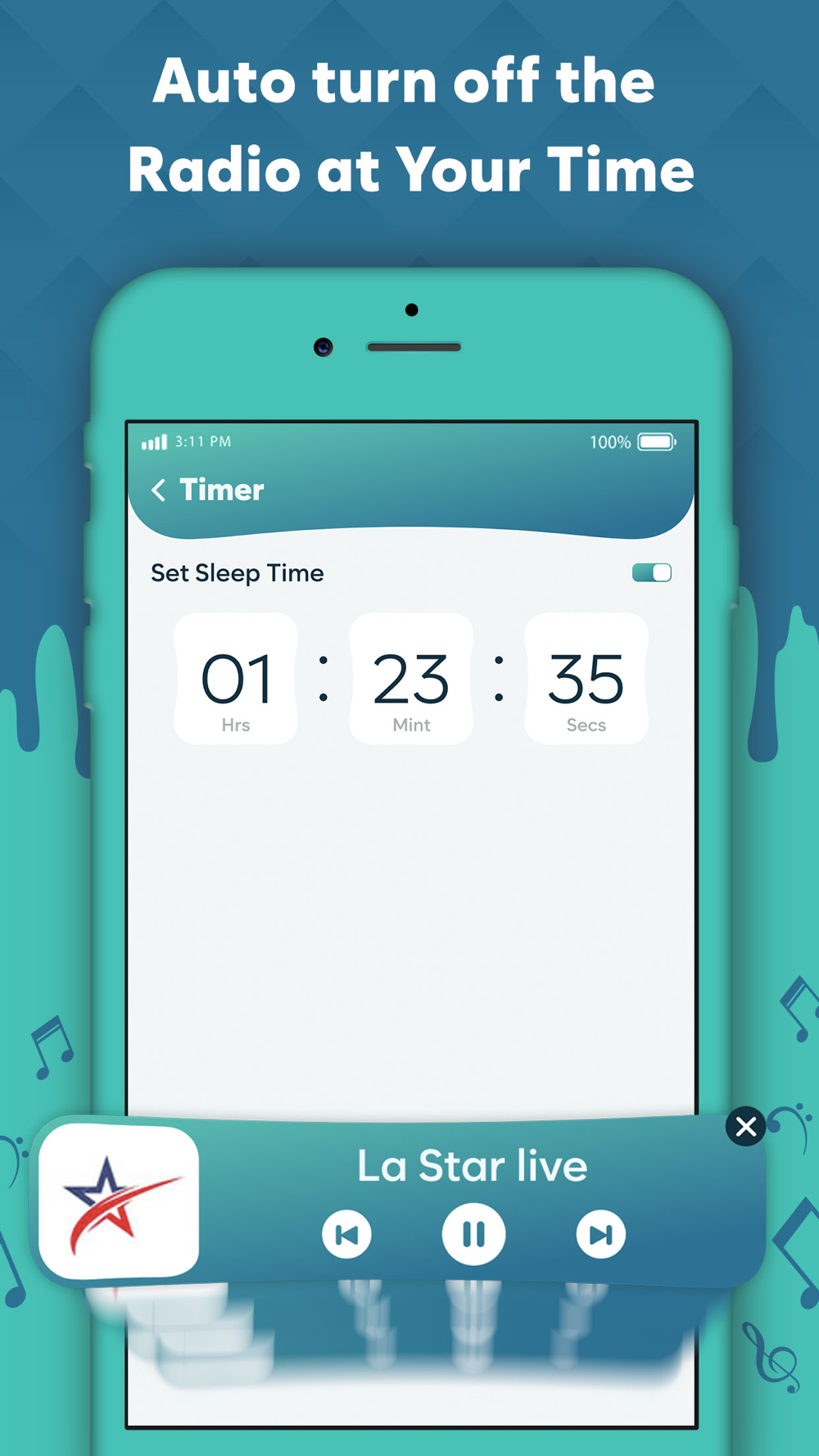 - Provides sleep timer option to turn off the radio playing at the given time.