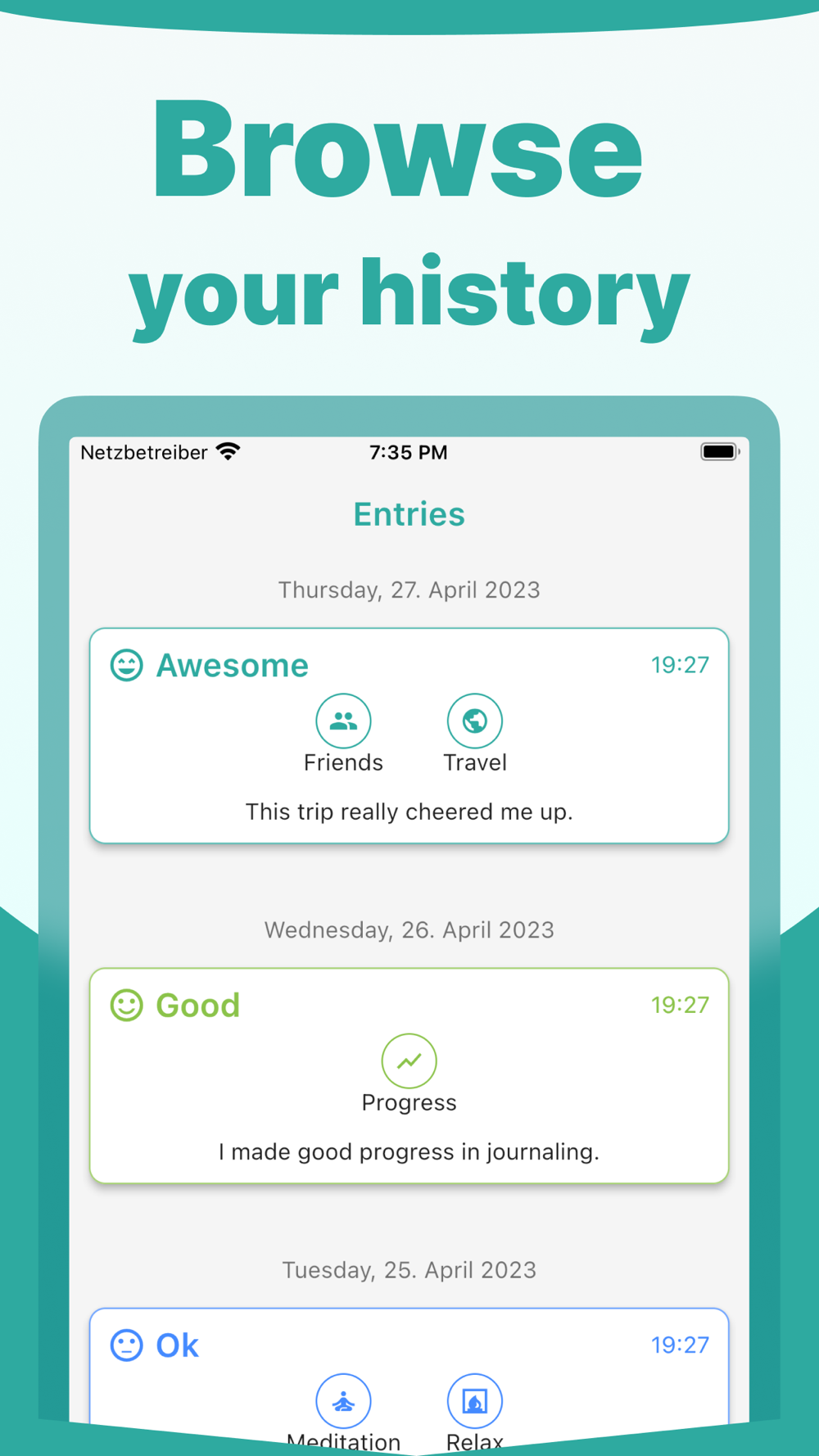 We value your privacy. Your journal entries are just yours, only accessible with your device.