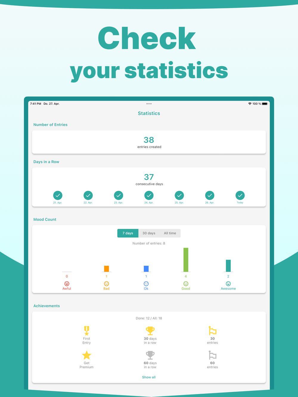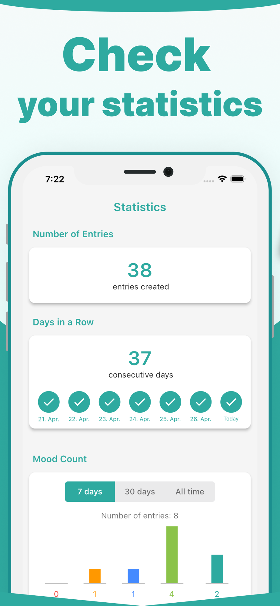 Forget all the hassle and start tracking your mood and daily activities with just a few taps!