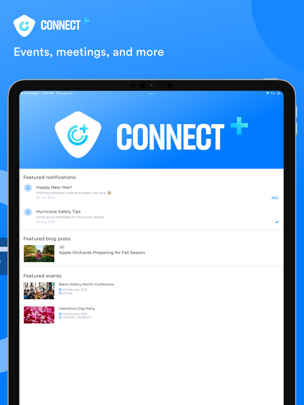 The Connect Plus+ app is the best place to stay up to date with information, news and events. Instantly access information using resource links, a documents library, and more! Stay informed with push notifications and instantly get dates, location, and links to meetings and community events. Easy, convenient and secure! Get the Connect Plus+ app today!