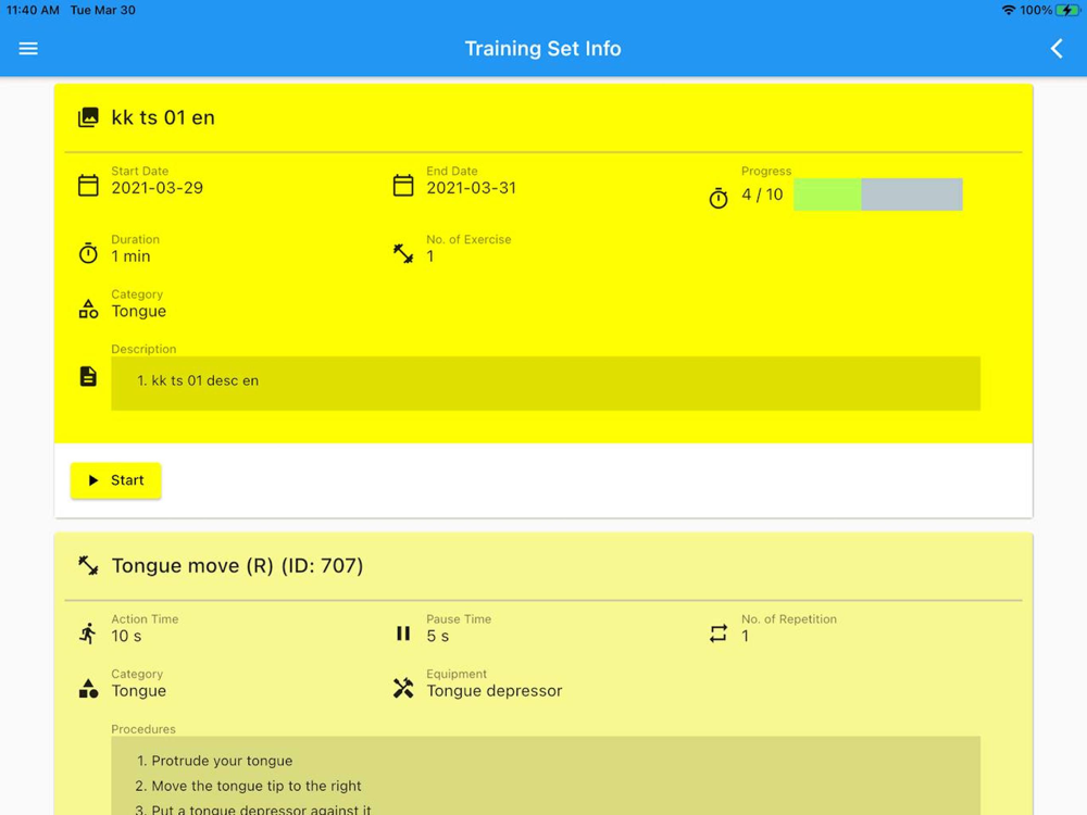The app also provides a convenient way for the speech therapists to register the patients in need, tailor-made suitable oral motor training programmes for their patients, and keep track on the compliance of the patients in performing the exercises. Their patients could follow the tailored-made oral motor exercise training programme. The progress in performing the training programme could be monitored by the speech therapist.
