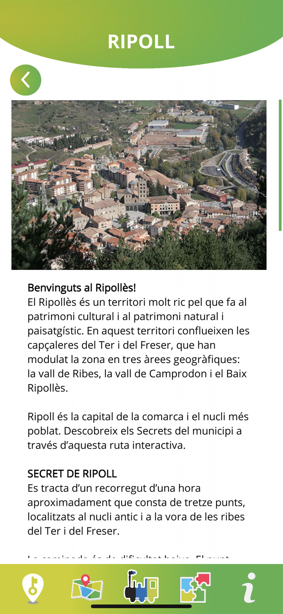 L’aplicació us servirà com a guia per recórrer les rutes proposades, fruit del treball conjunt amb els ajuntaments dels municipis i altres agents del territori.