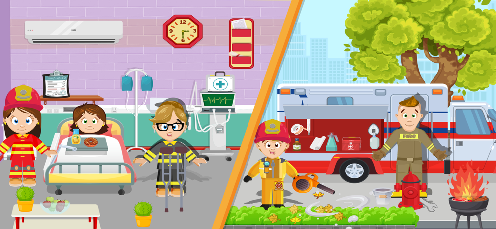 Welcome to pretend play games where you are allowed to play with everything in open world space! Use your imaginations and creativity to explore, we present you another pretend game where you create your own firefighter story in this super exciting town firefighter life adventure. Get ready to play different roles of firefighting staff such as engineman, ladderman, fire man and much more. Have fun in the pretend town firefighter life, interact and play different roles of pretend firefighter life. Each pretend town firefighter room is available for some extreme house fun.