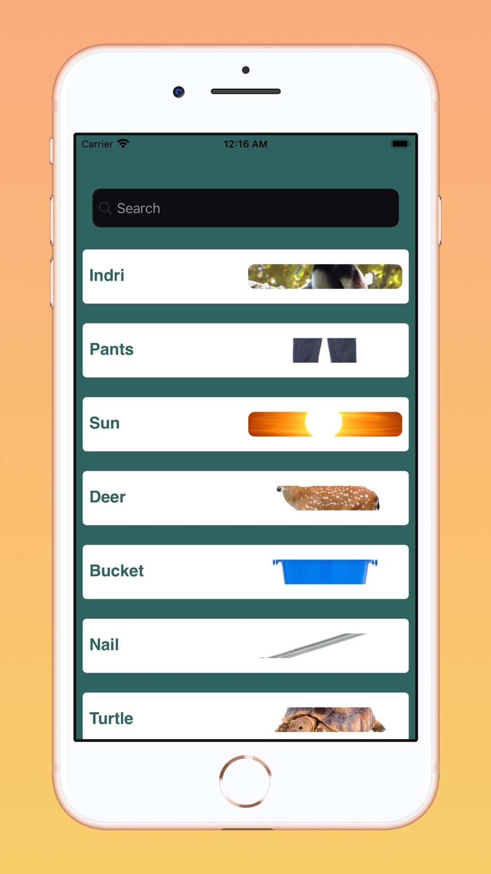 In this App you can see the name of the common foods, fruits, animals, colors, nature and vegetables spelled and pronounced in Tigrigna. The words are written in English and in Dutch.