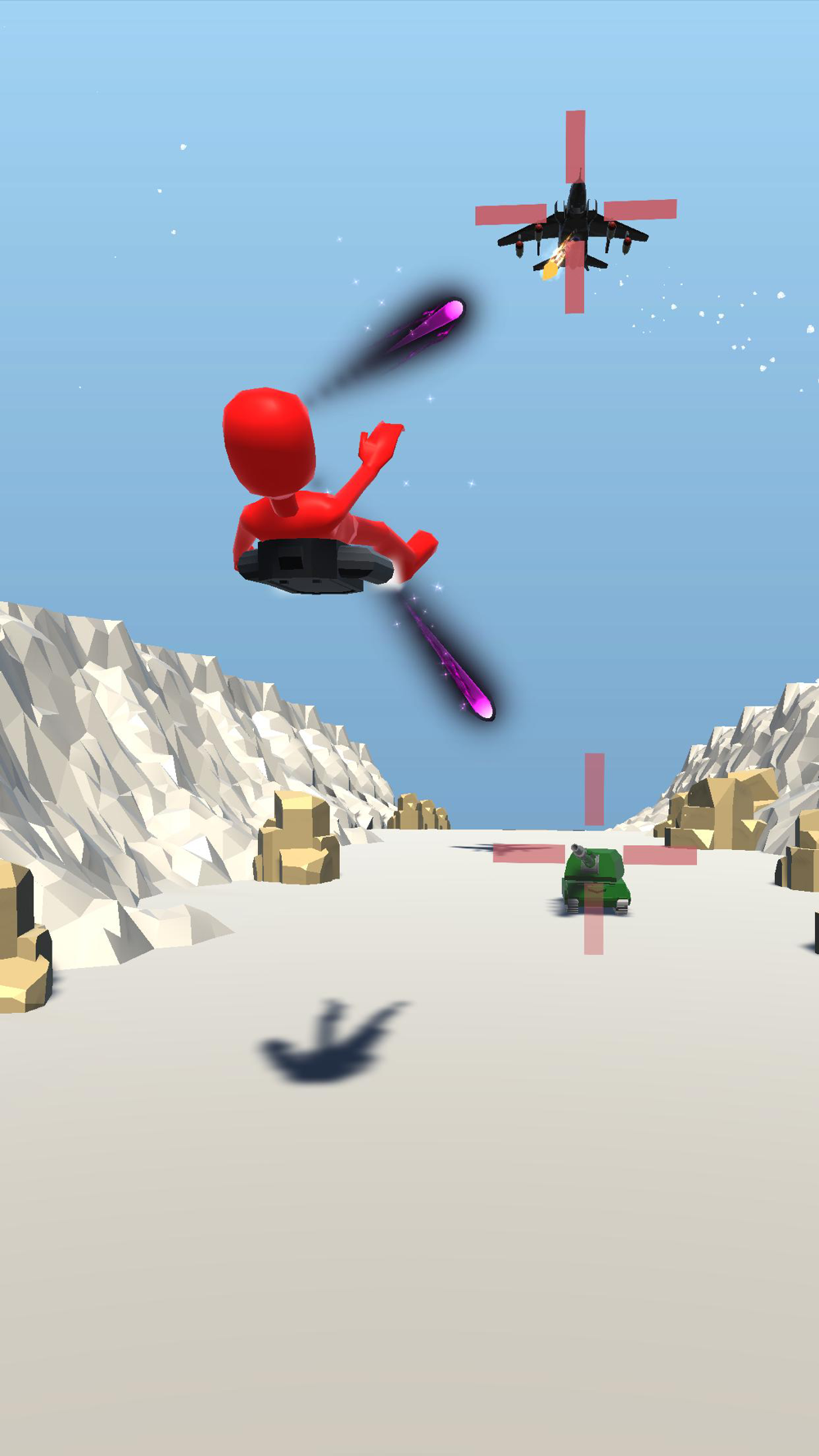 You have a jetpack, and you decide to put it to use, by stealing something valuable. Now there are tanks, and aircrafts chasing you. Fly and shoot them away in this chasing game!