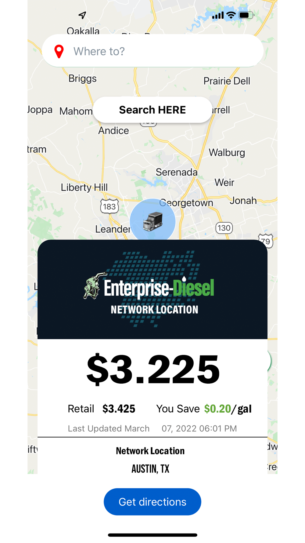 - Get accurate pricing information for fuel stops near your location and along your route.