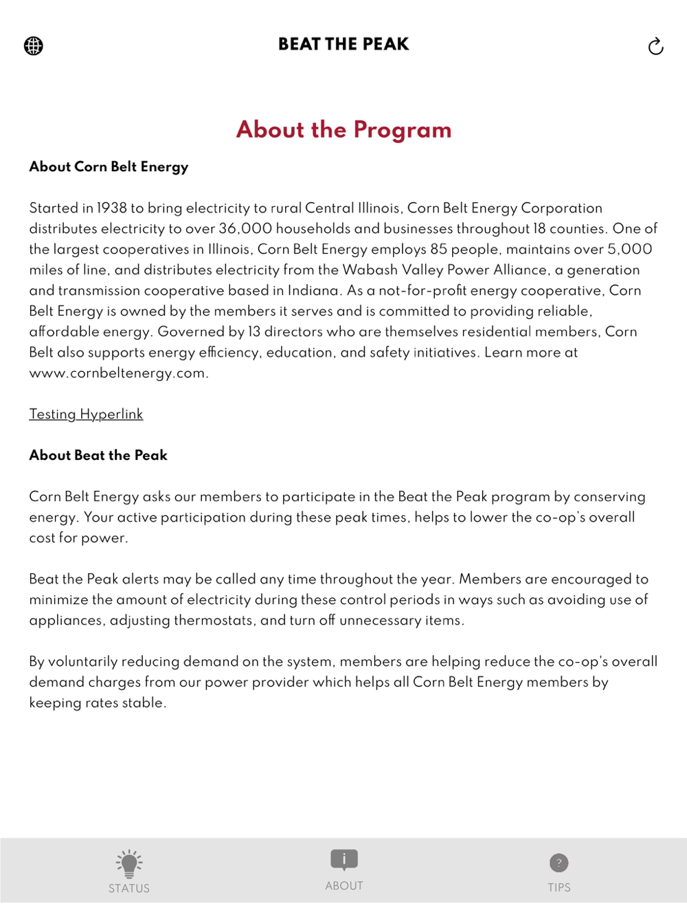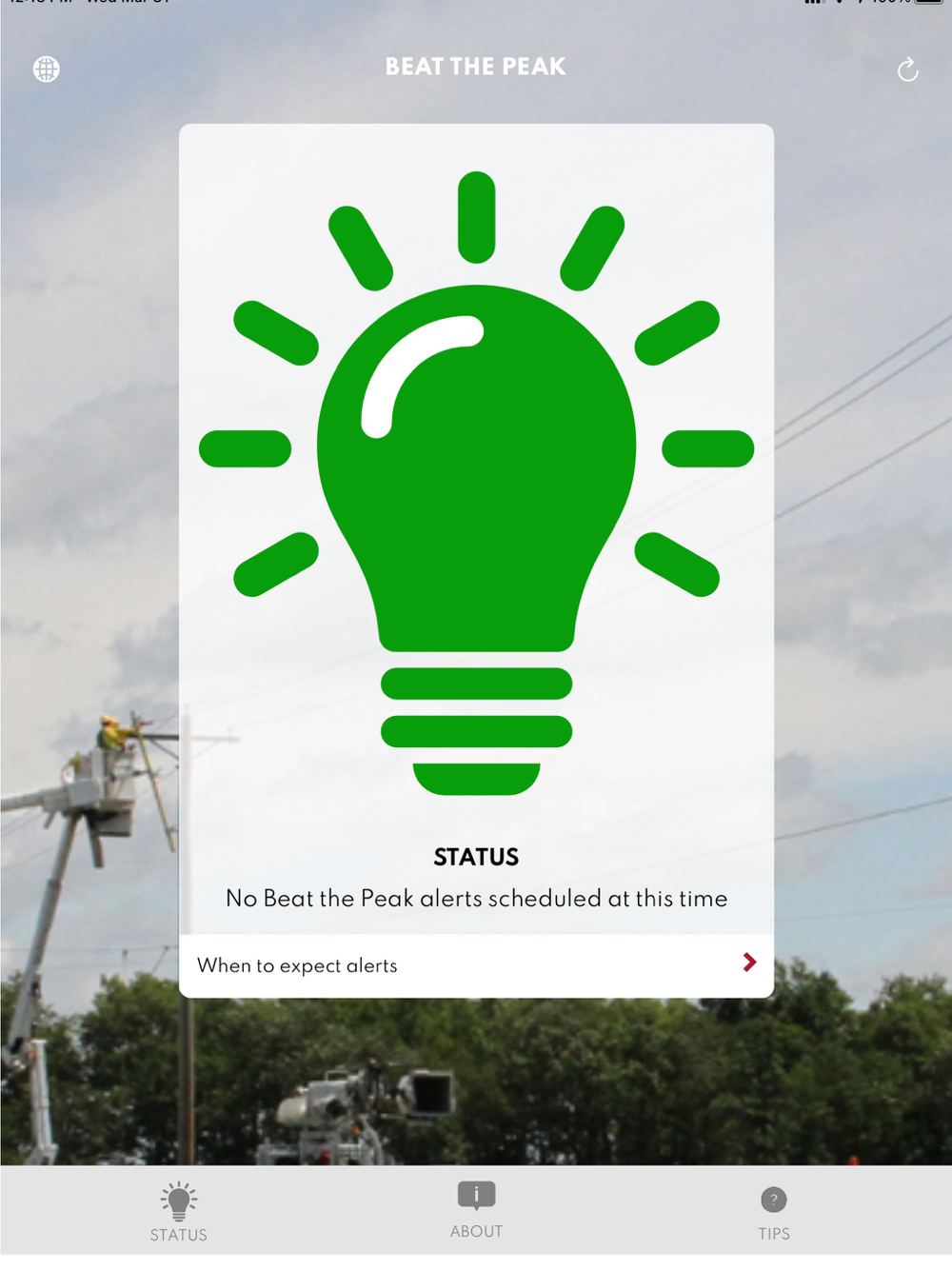This app will let you know when energy conservation windows would benefit everyone and suggest ways to save energy during these periods. We will occasionally recommend a few ways to conserve power at the most critical times. If we can lower usage at peak times, we can keep from activating extra power generation plants, saving money for all.