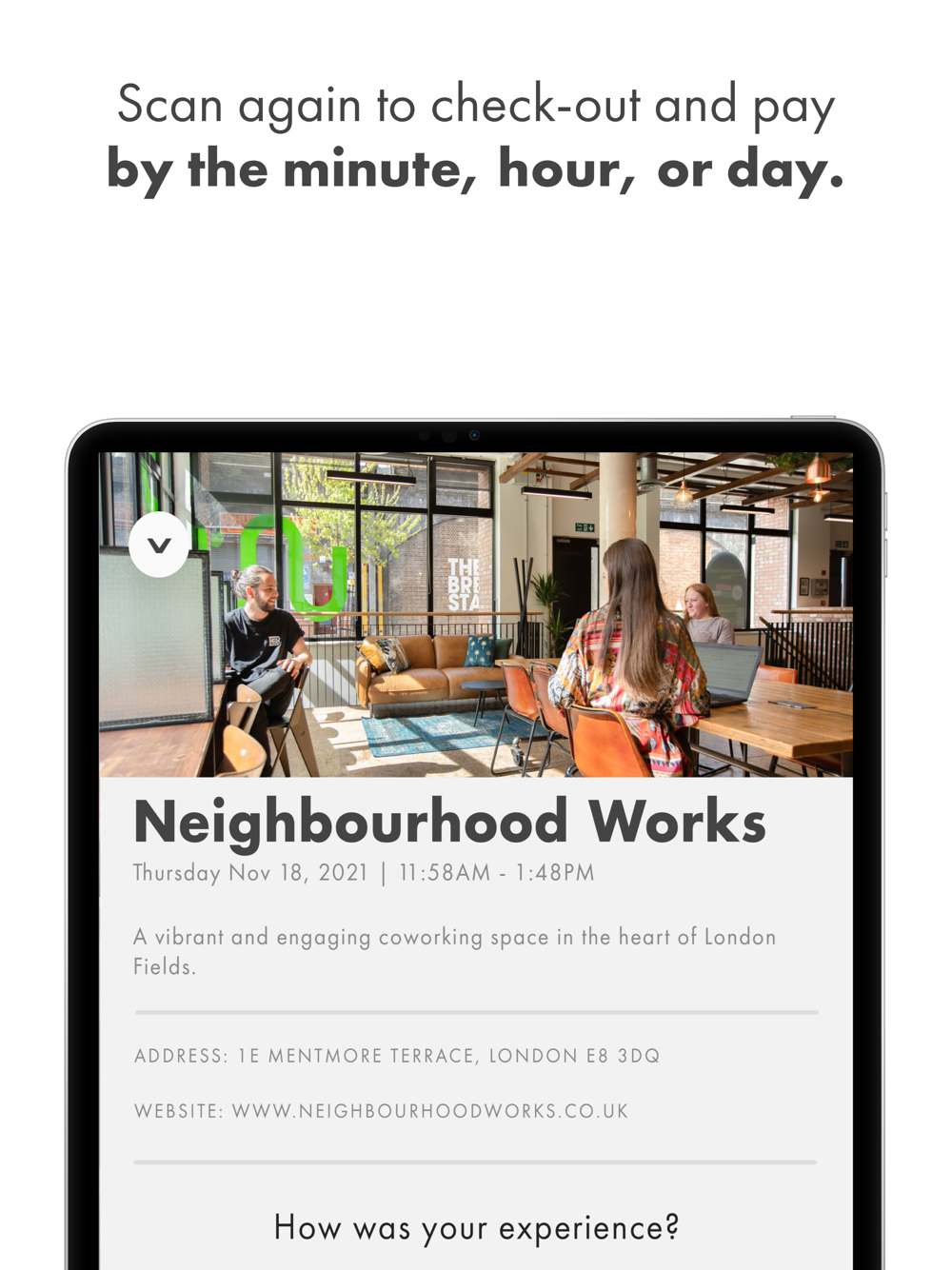 -Scan the Flow QR code at the front desk to check-in when you enter
