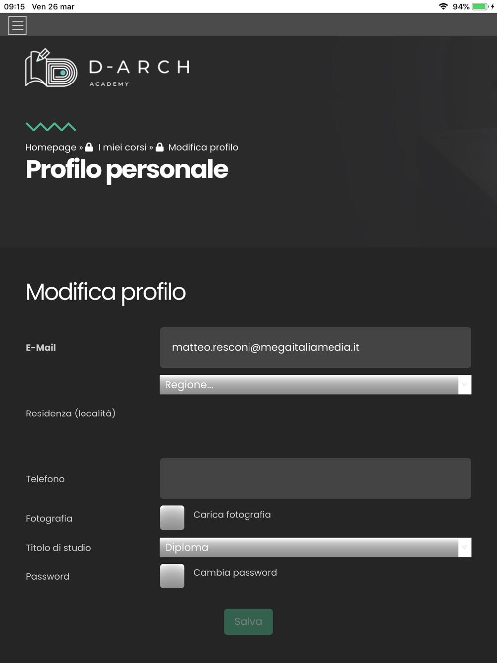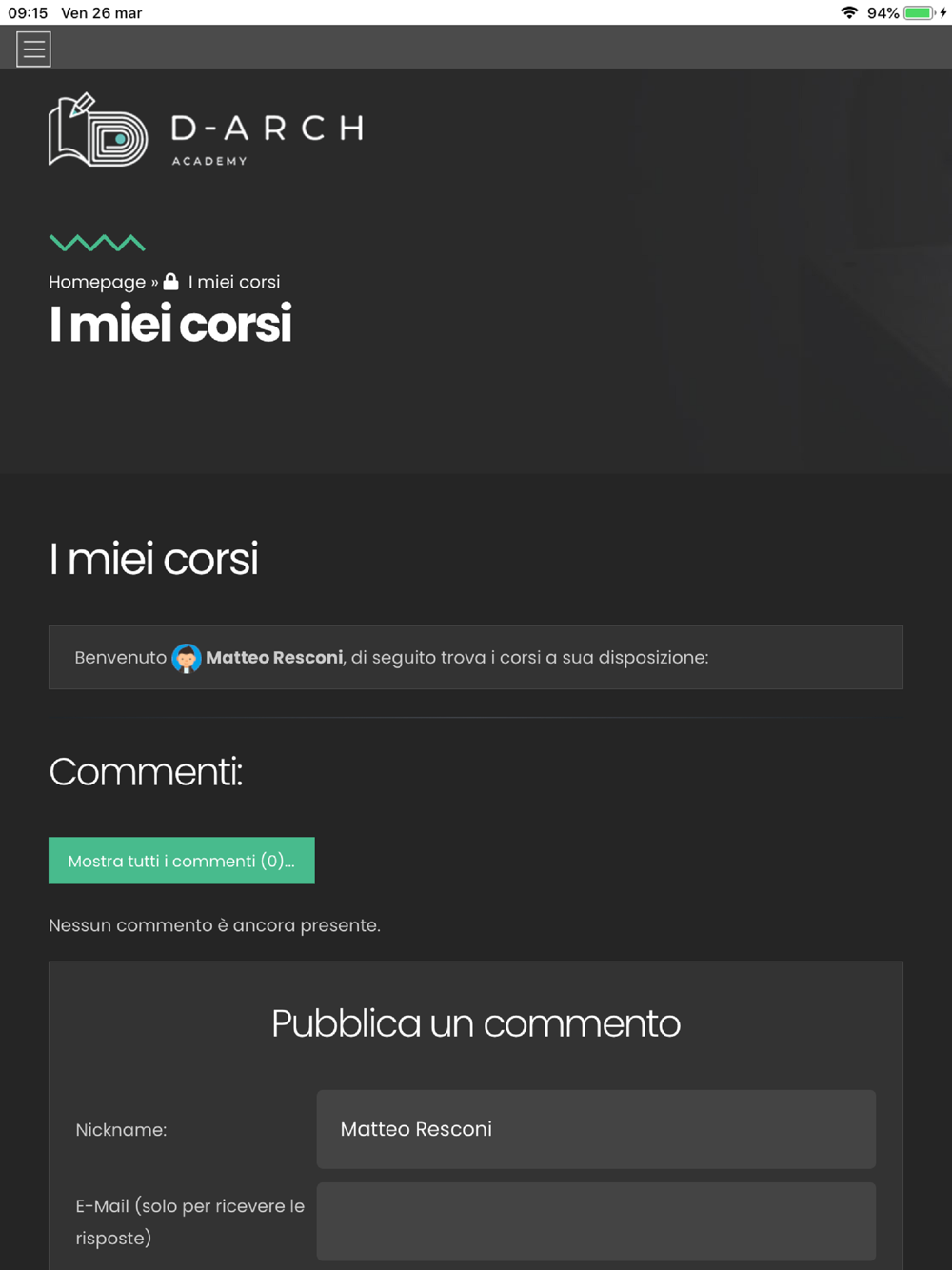 • accedere con facilità alla piattaforma e-learning D-ARCH Academy, per cui hai già acquistato uno o più corsi e-Learning (dal sito di D-ARCH Academy)