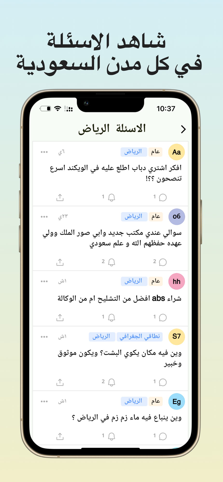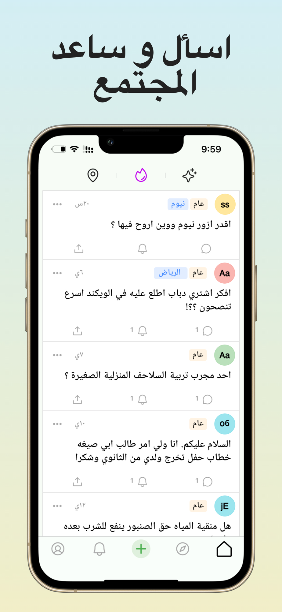 إمكانية استعراض الاسئلة في نطاقك الجغرافي ( الاسئلة الي يشاركها المستخدمين في نطاقك الجغرافي داخل دائرة واسعة ) يمكنك مشاهدتها و الاجابه عليها.