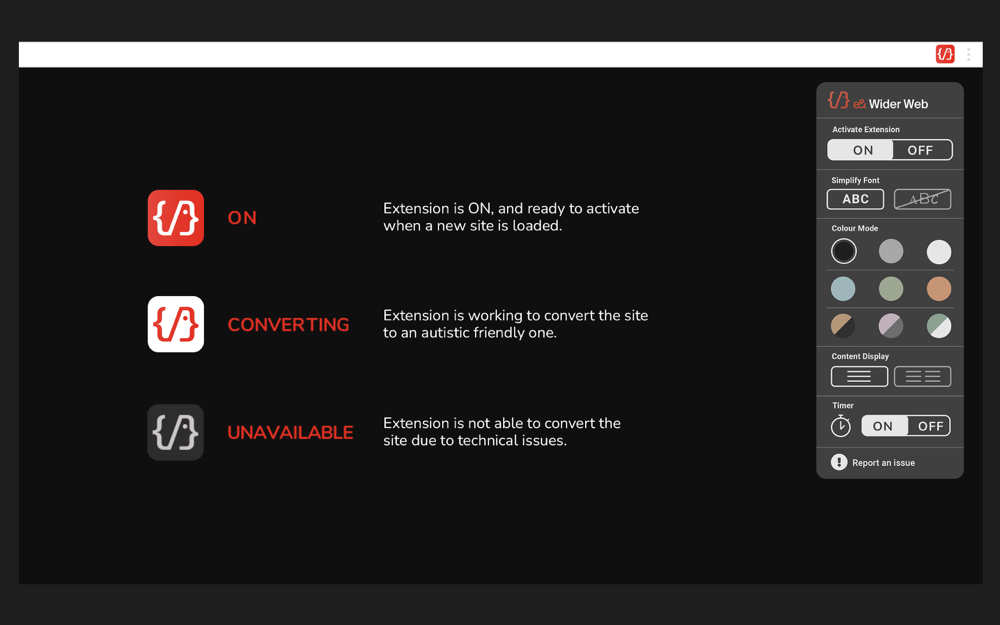 The web can easily become overwhelming to people with Autism. That’s why we created Etisalat Wider Web to simplify the way some experience the web. The web extension is the first of its kind and curates the user experience to people who are on the autistic spectrum.