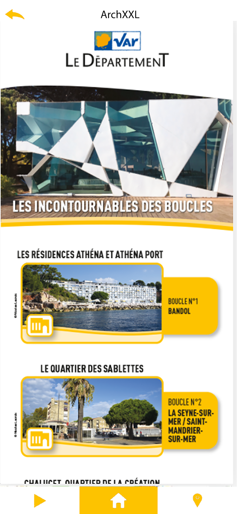 Credits: Application designed by the Département du Var and created by AudioSpot. The "Parcours Littoral d’Architecture Contemporaine” (Coastal Contemporary Architecture Trail) is brought to you by the Conseil Départemental du Var.