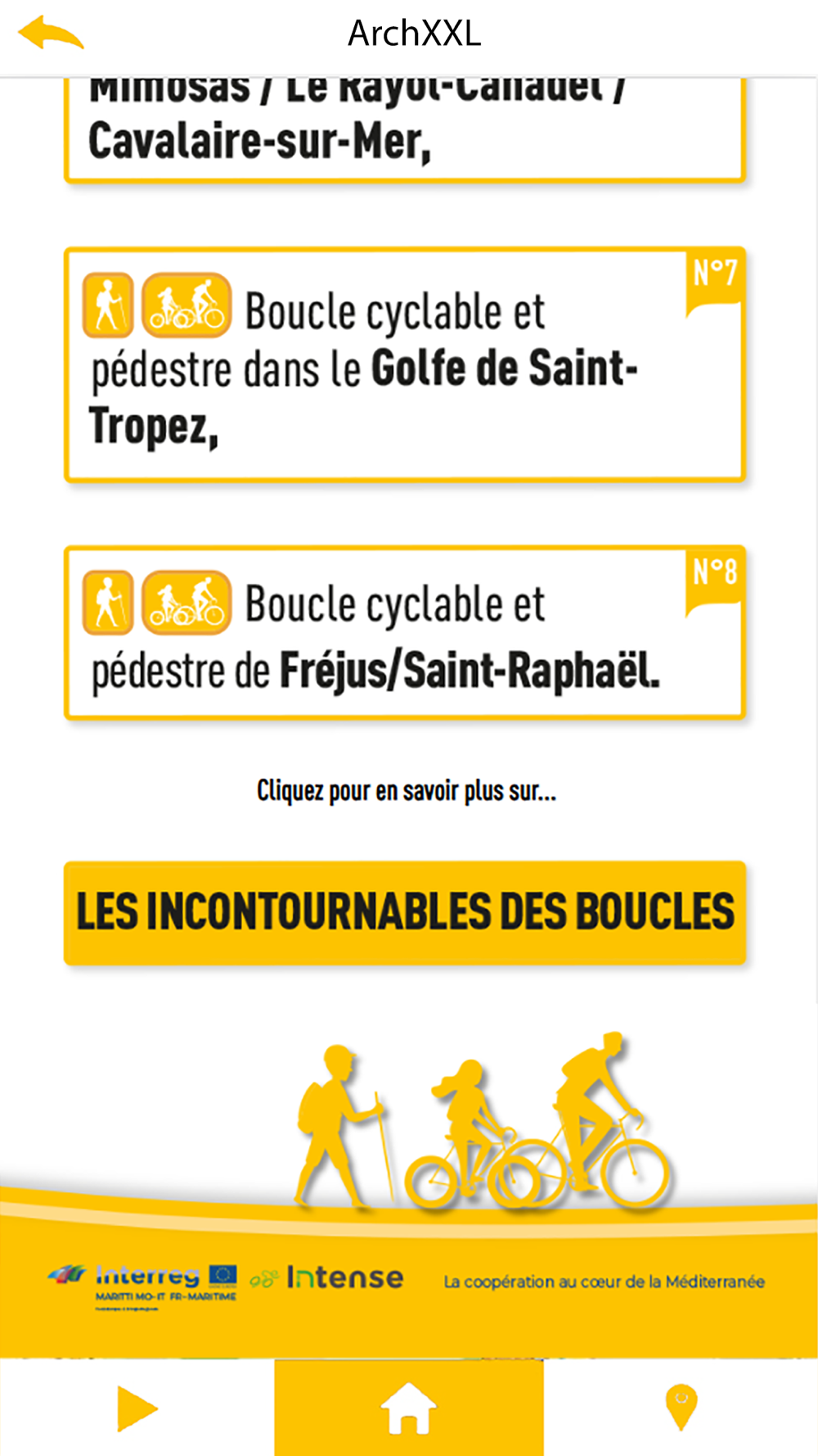 How does it work? ArchXXL is an application providing commented tours. It tracks your location when you are moving around on foot or by bicycle and sends you audio and visual information when you approach architectural sites. You can go back to the homepage, to the page for the loop you are currently doing, see the trail map and location, and listen to the last audio commentary again, whenever you choose to.