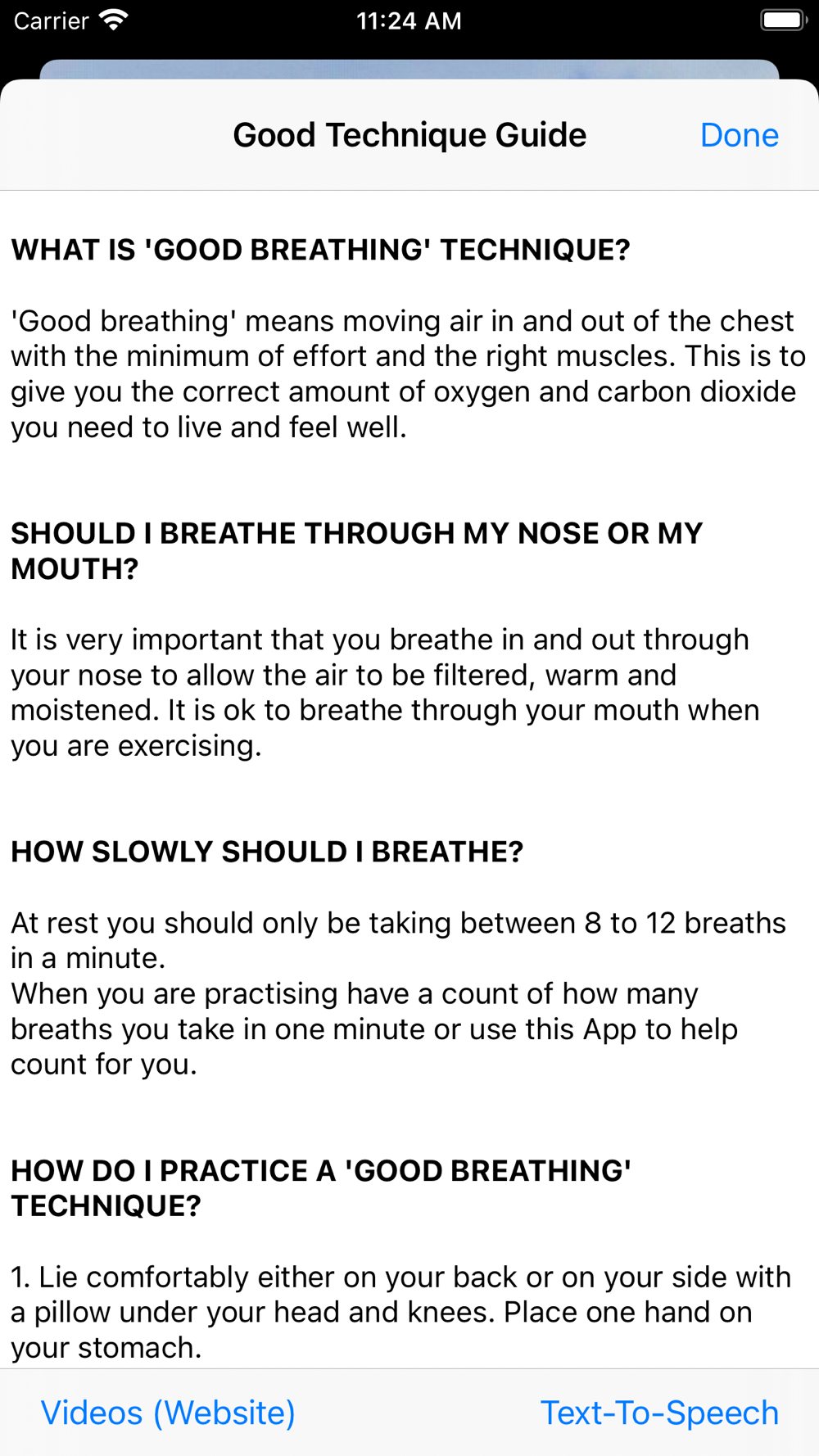 Follow the breathing exercises and set the duration / speed that is right for you.