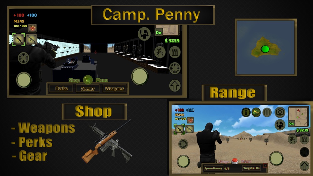 Every map you conquer can then be played in playground mode. Which consists of 5 game modes . (Standard, VIP , Sniper DM, Hunted and Zombies). Play and earn cash. Every game mode has their own challenges. Complete all the challenges for each game mode to unlock special skins.