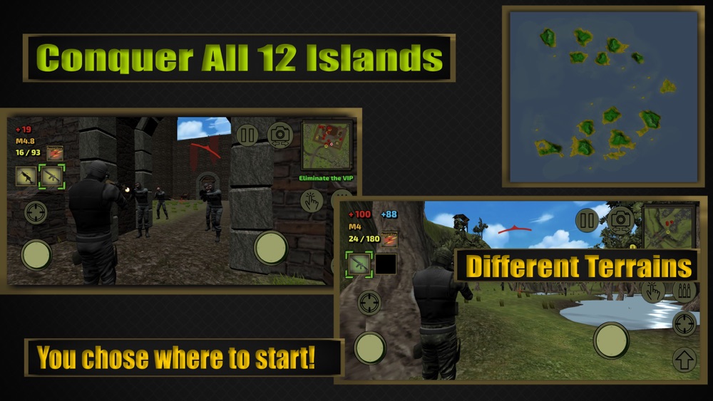 There are 12 islands filled with enemy troops. Your objective is to conquer all 12. How you do it or what order its done in, is up to you. With an armoury full of weapons, armor and perks to unlock and use, the playground is your oyster.