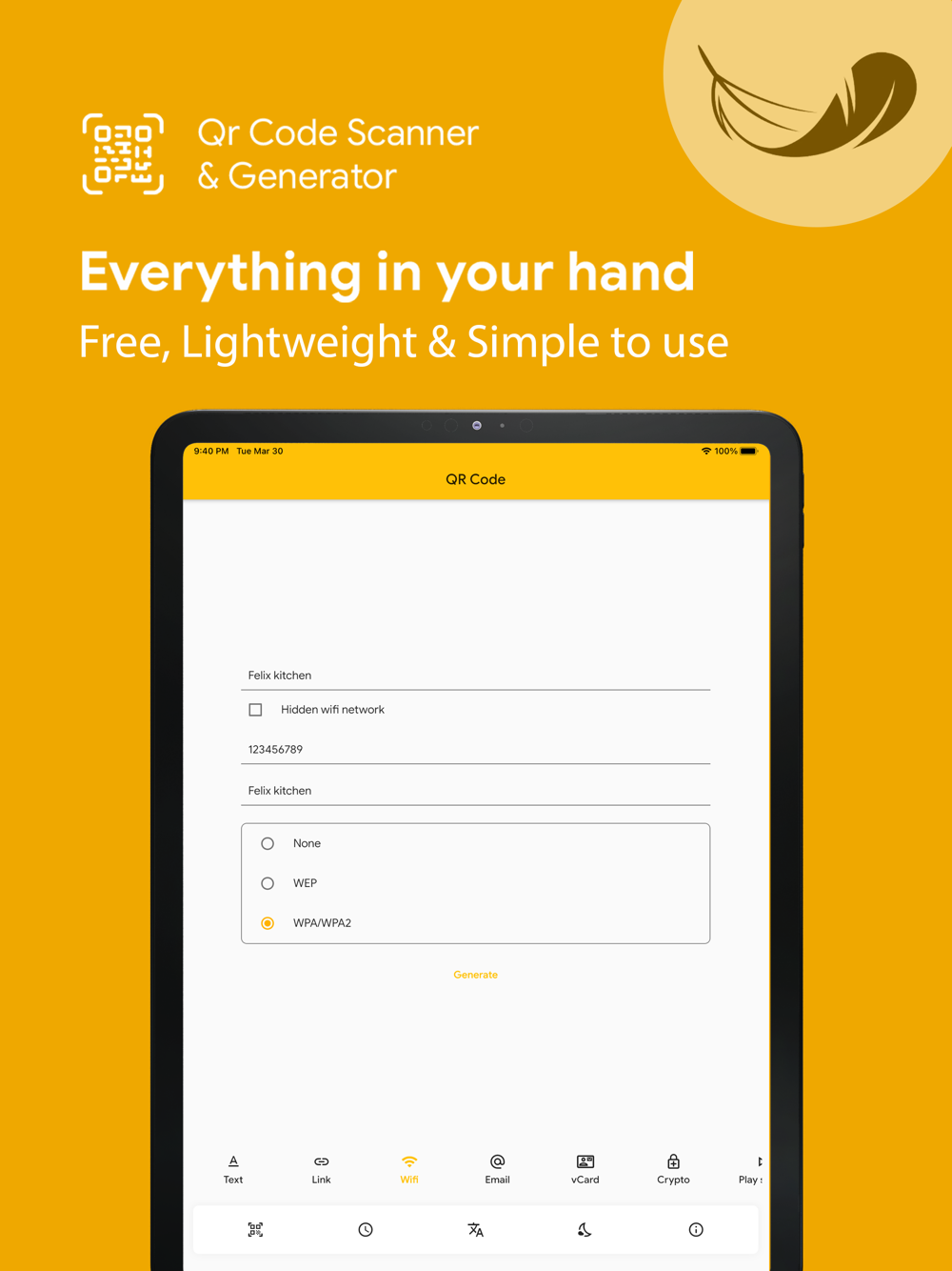 We support multiple types of QR code (text, link, wifi info) and continue to support others type in the feature (crypto, contact, image,..).