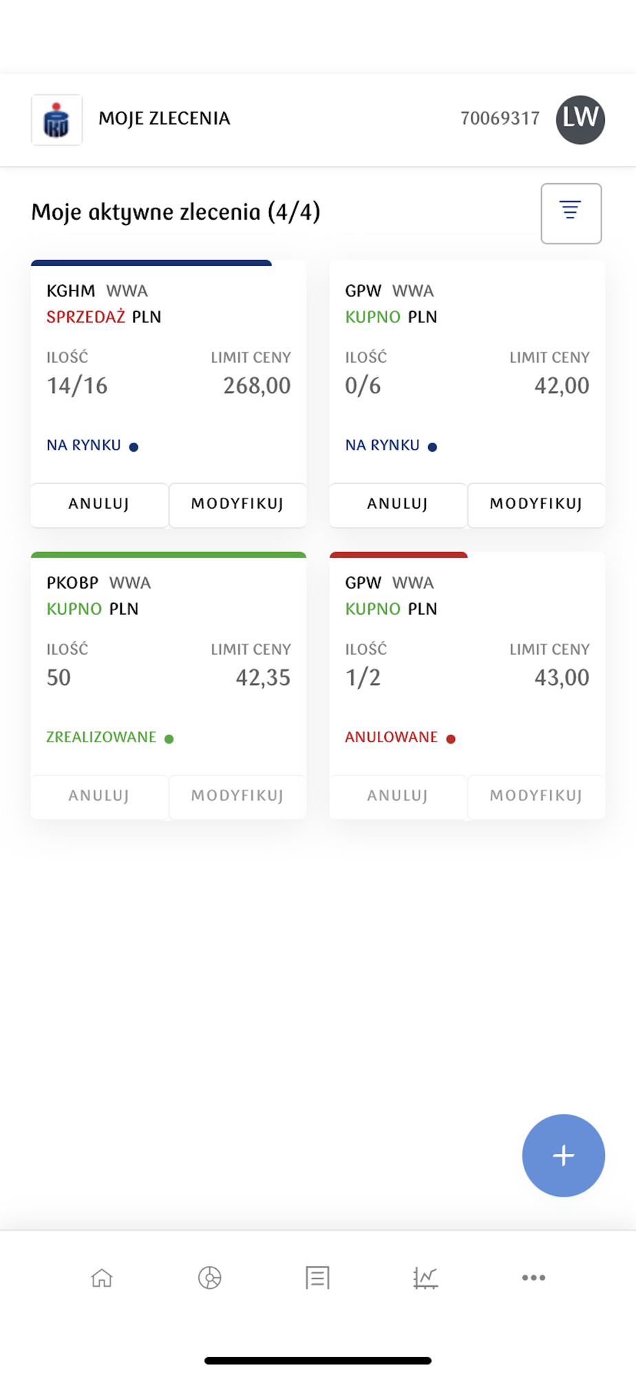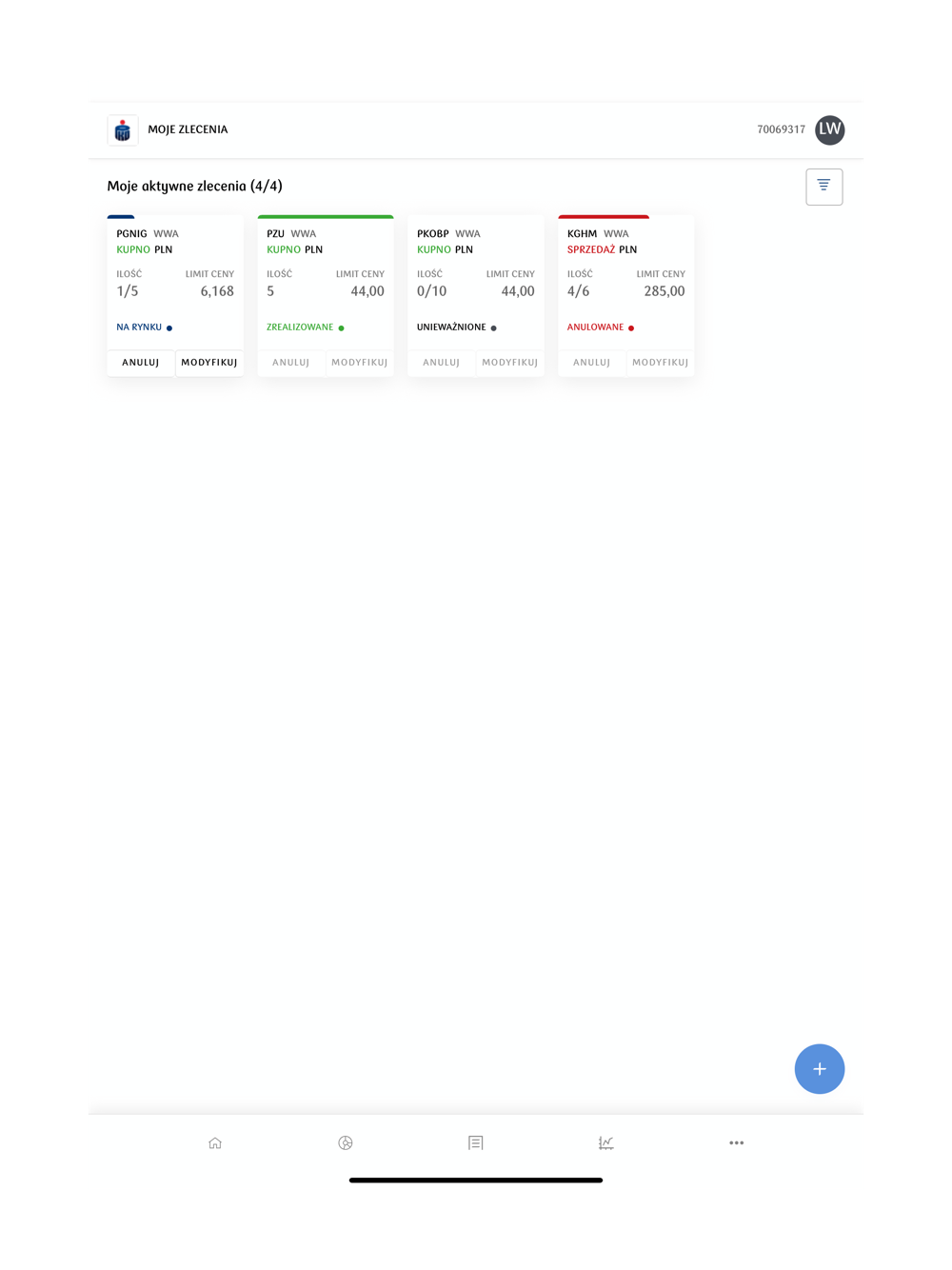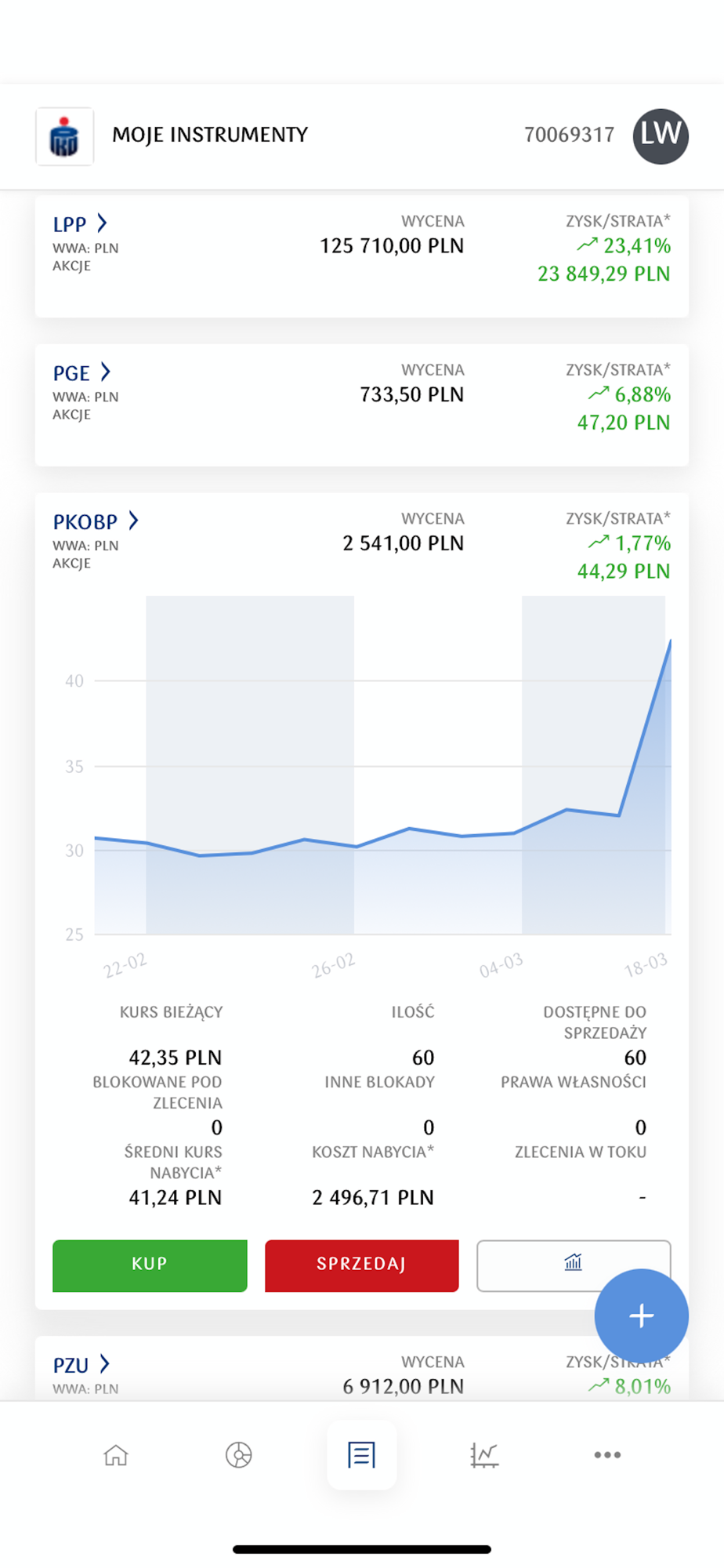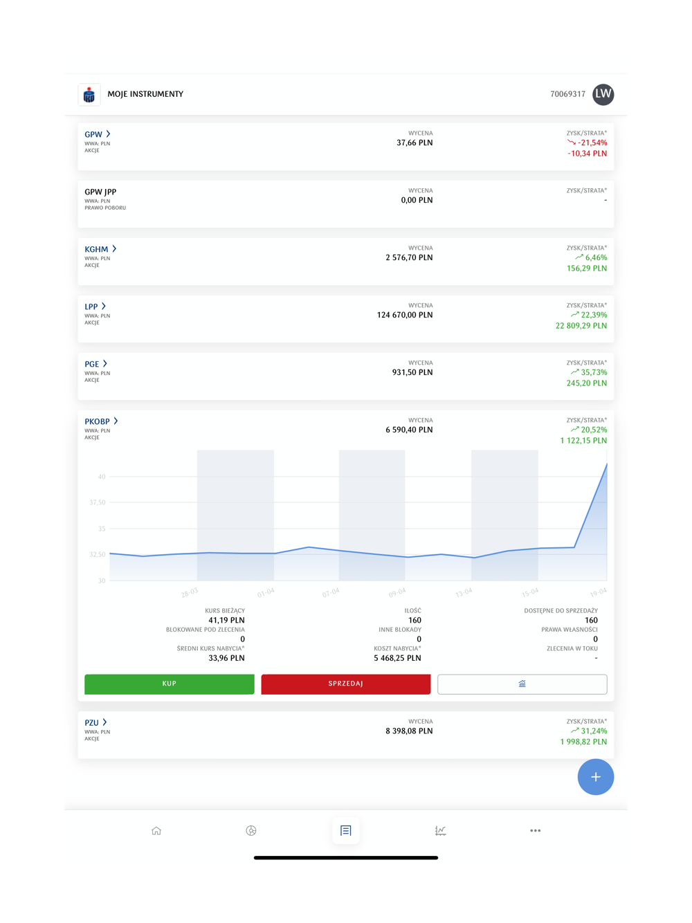 PKO supermakler to dostosowana do potrzeb inwestorw, zbudowana zgodnie z najnowszymi trendami w zakresie dowiadcze uytkownika aplikacja Biura Maklerskiego PKO Banku Polskiego. Jej gwn cech jest kompleksowo oferowanych narzdzi, poczona z prost i intuicyjn obsug. Instalujc aplikacj mobiln, otrzymujesz moliwo inwestowania na Giedzie Papierw Wartociowych w Warszawie, rynkach zagranicznych oraz w detaliczne Obligacje Skarbu Pastwa (w ramach rachunku SUPER IKE). Aplikacja PKO supermakler posiada narzdzia, ktre wspomagaj zarzdzanie rachunkiem inwestycyjnym, w tym midzy innymi: - rejestracja, modyfikacja, anulacja zlece - przegld zlece biecych i historycznych - informacja o transakcjach biecych i historycznych - dostp do notowa w czasie rzeczywistym - wykresy biece i historyczne z moliwoci zastosowania wskanikw AT - prezentacja stanu rachunku finansowego wraz z wycen instrumentw finansowych - zapisy w ofercie publicznej (Prawa Poboru, IPO) - dostp do depesz PAP oraz ESPI/EBI - podgld komunikatw i newsw wysyanych przez Biuro Maklerskie PKO Banku Polskiego - moliwo logowania za pomoc Face ID (biometria twarzy) lub Touch ID (odcisk palca) Z aplikacji PKO supermakler moe korzysta kady klient Biura Maklerskiego PKO Banku Polskiego, posiadajcy dostp do rachunku inwestycyjnego (w tym SUPER IKE) przez Internet. Aby aktywowa aplikacj mobiln, zaloguj si do niej wykorzystujc dane do logowania z wersji przegldarkowej i wpisz kod aktywacyjny, ktry otrzymasz w SMS.