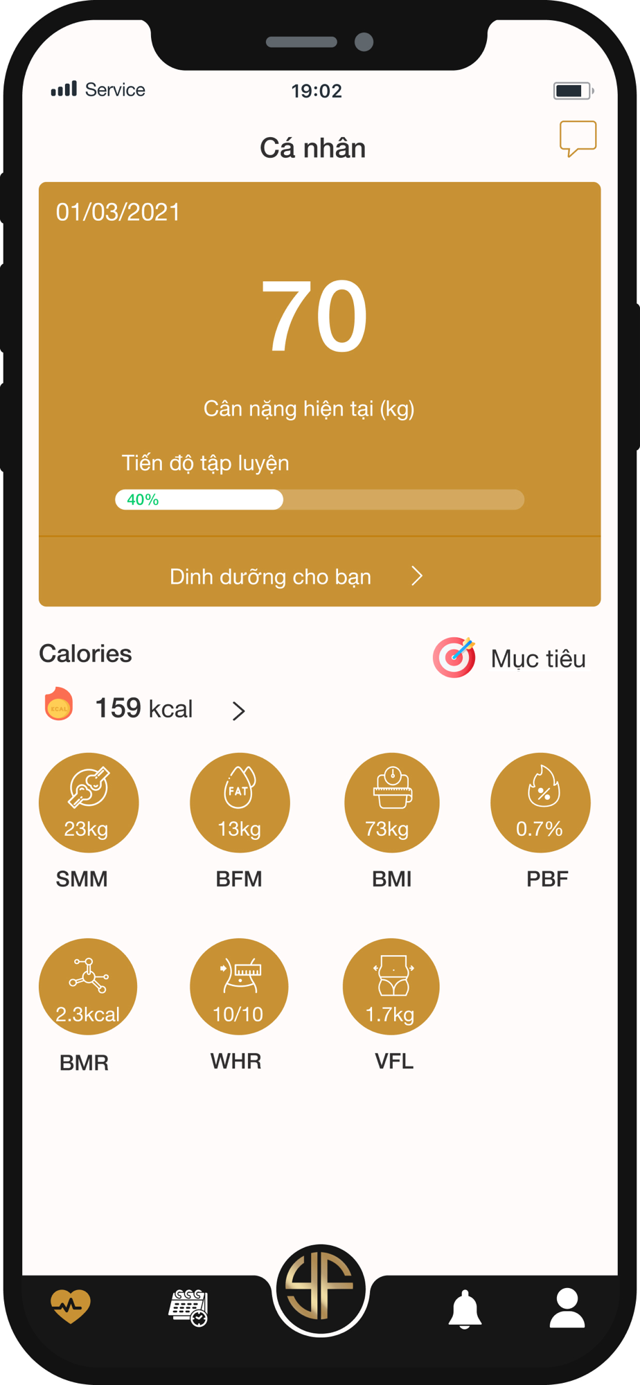 + quản lý chỉ số và dinh dưỡng cá nhân