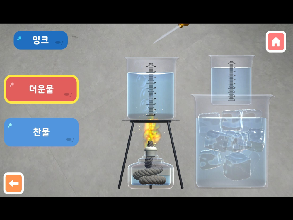 -더운물: 주위의 온도가 높으면 수성 물감 입자들의 운동이 활발하여 더 빠르게 확산되어 나아갑니다.